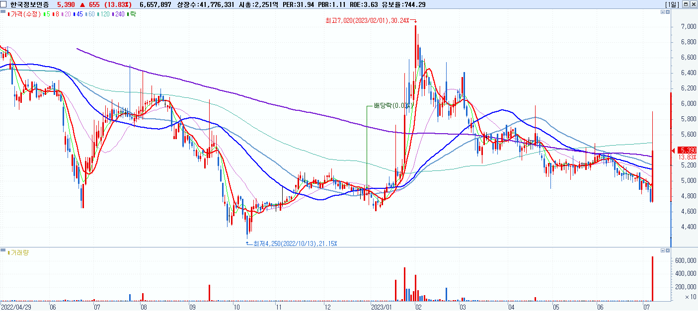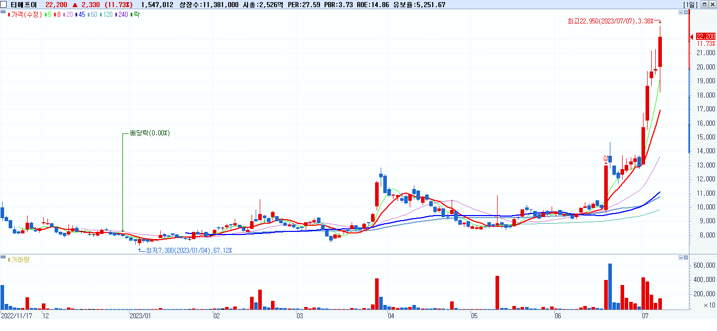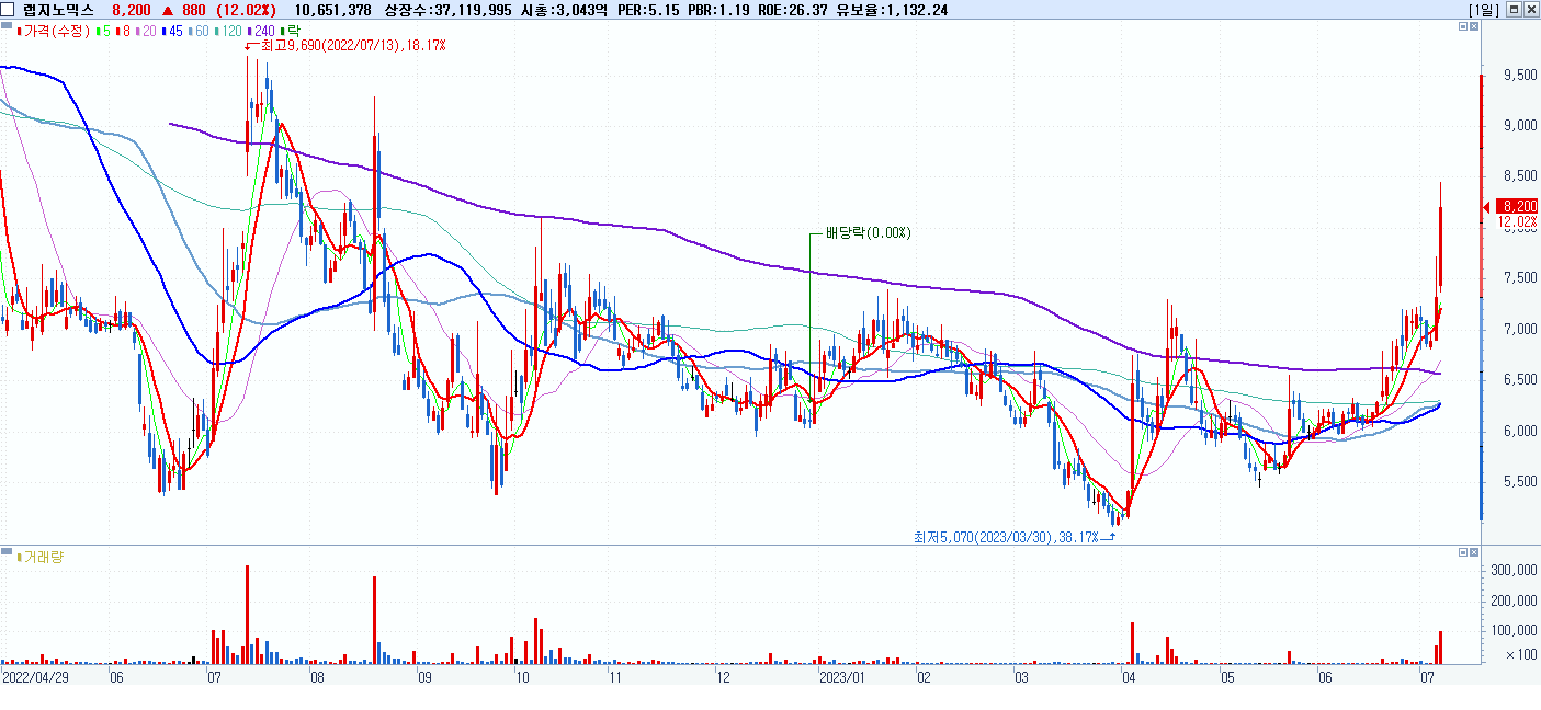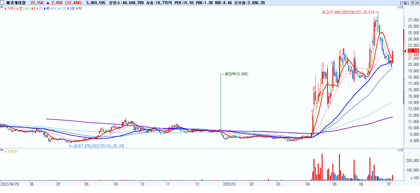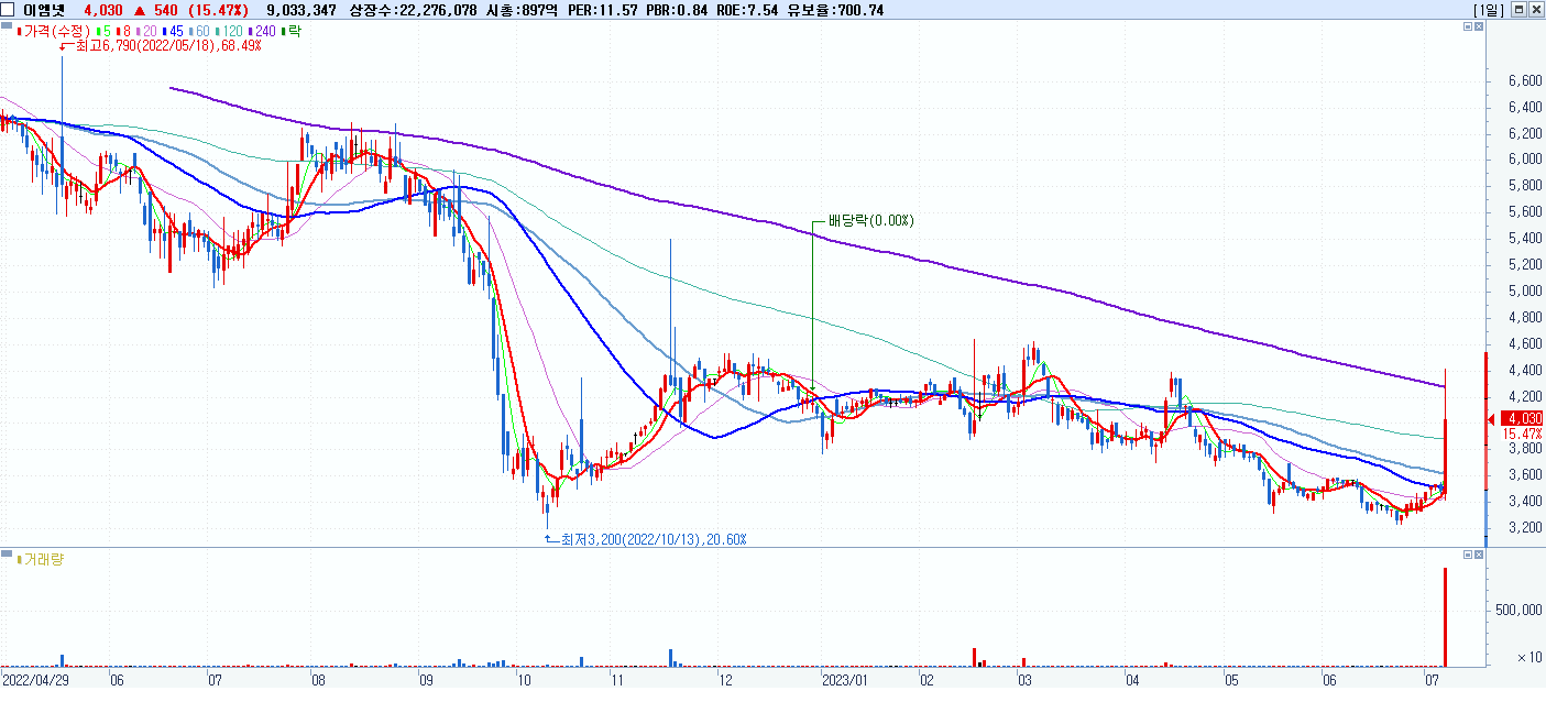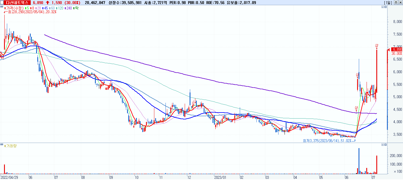 시총: 7,197억 거래량: 1,957,890 거래대금:531억