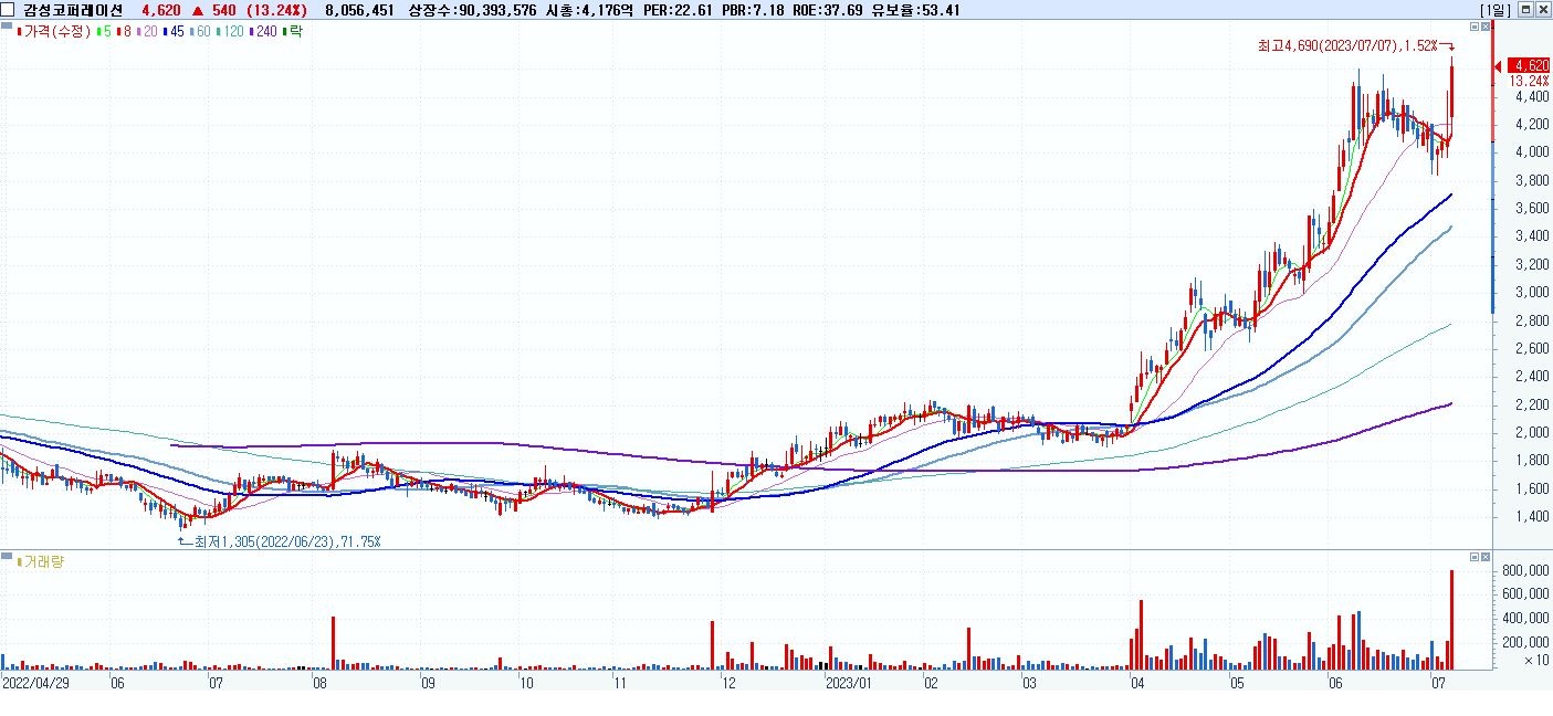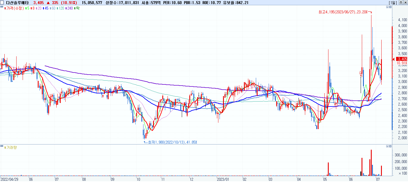 시총: 815억 거래량: 4,899,830 거래대금:127억