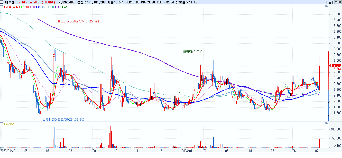 7.비투엔 (307870) 등락율 18.86%