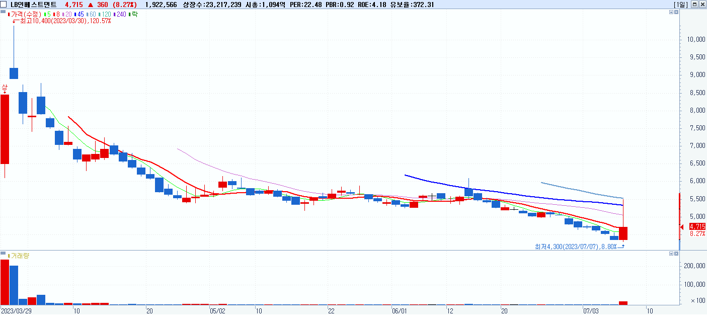 29.LB인베스트먼트 (309960) 등락율 8.27%
