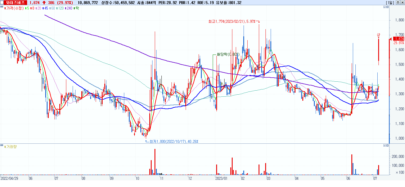 시총: 845억 거래량: 10,871,398 거래대금:177억