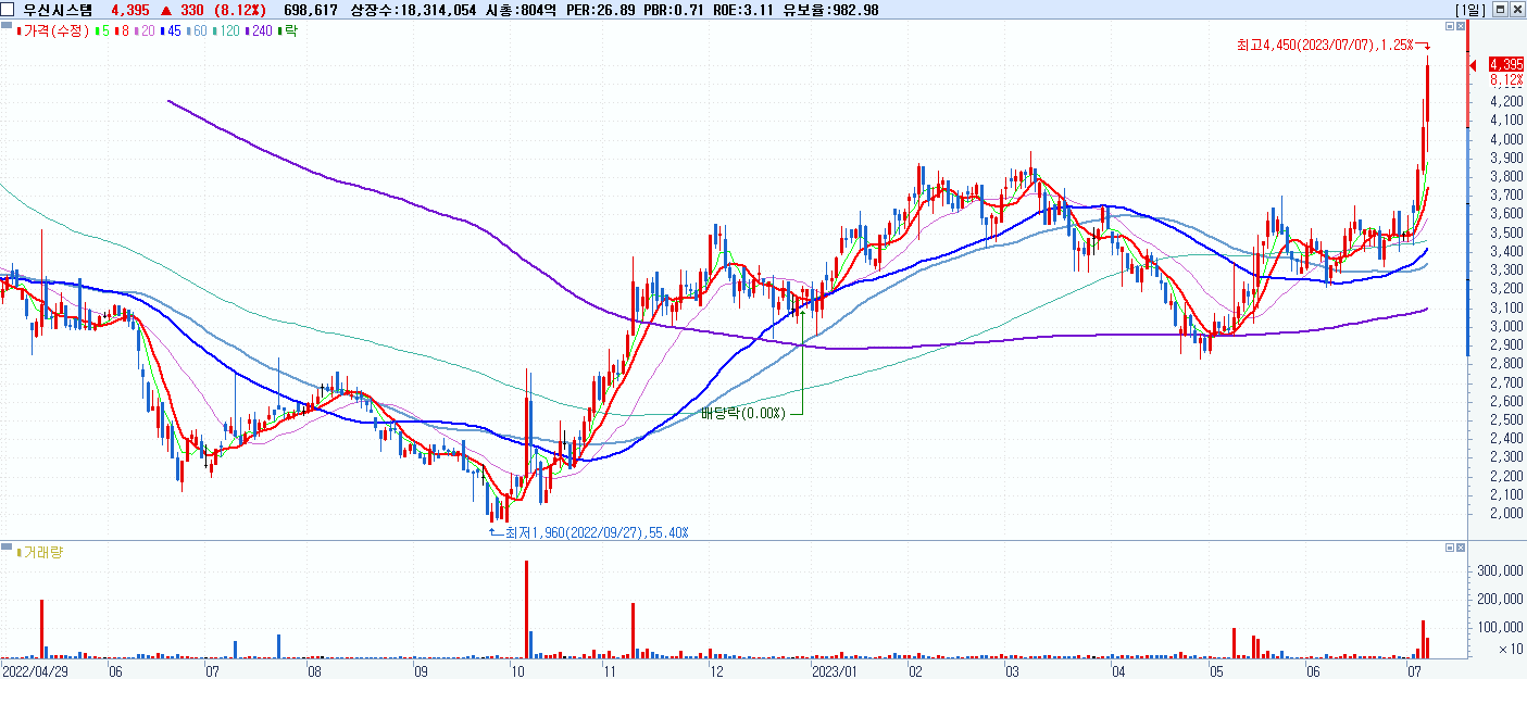 30.우신시스템 (017370) 등락율 8.12%