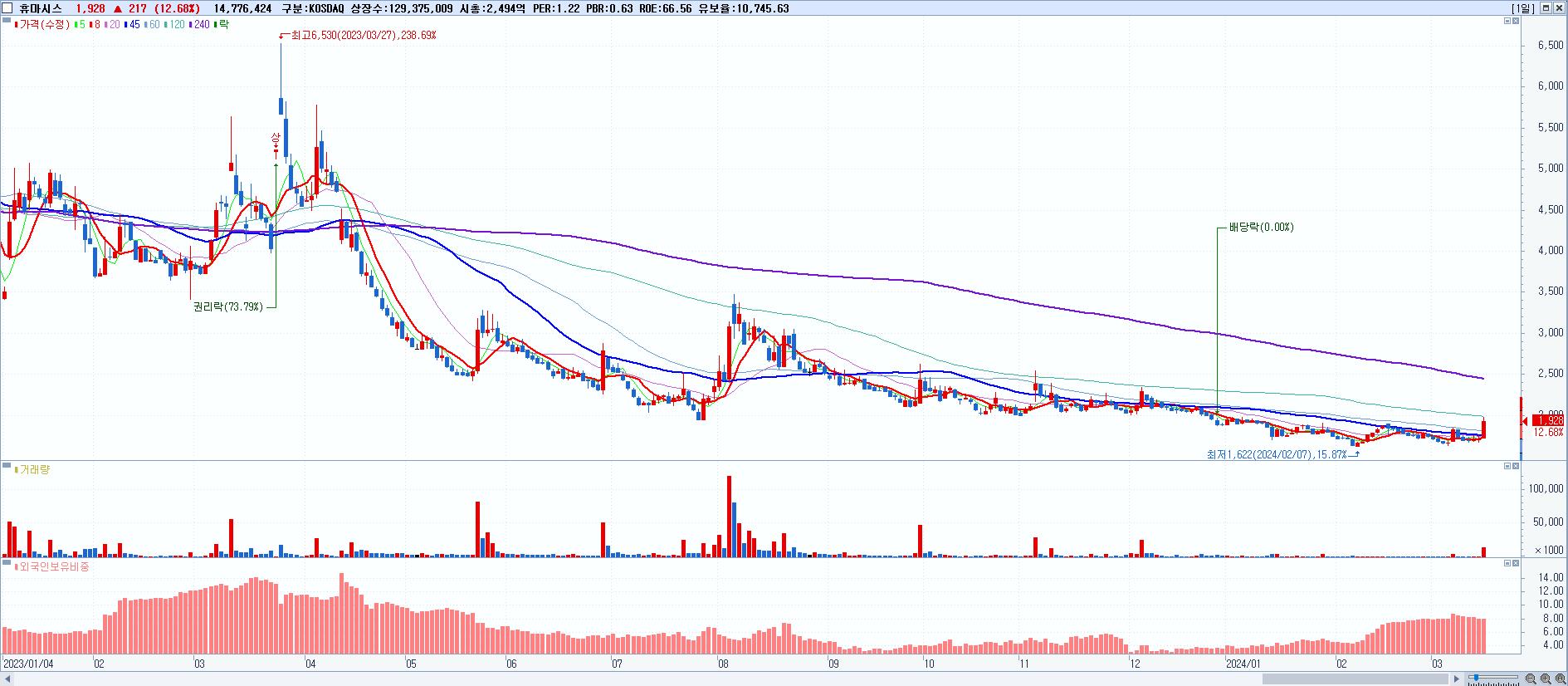 30.휴마시스 1,928원 ▲ 12.68% (KOSDAQ, 205470)