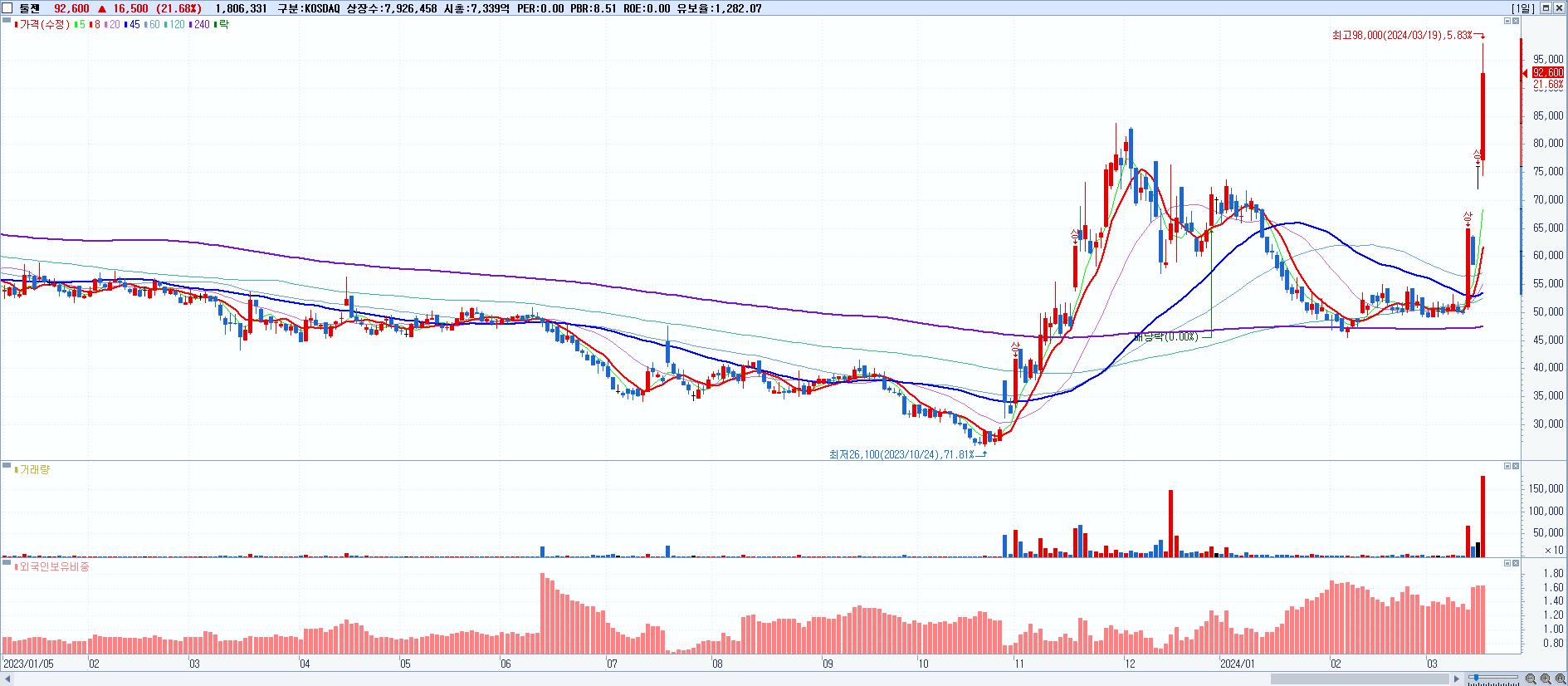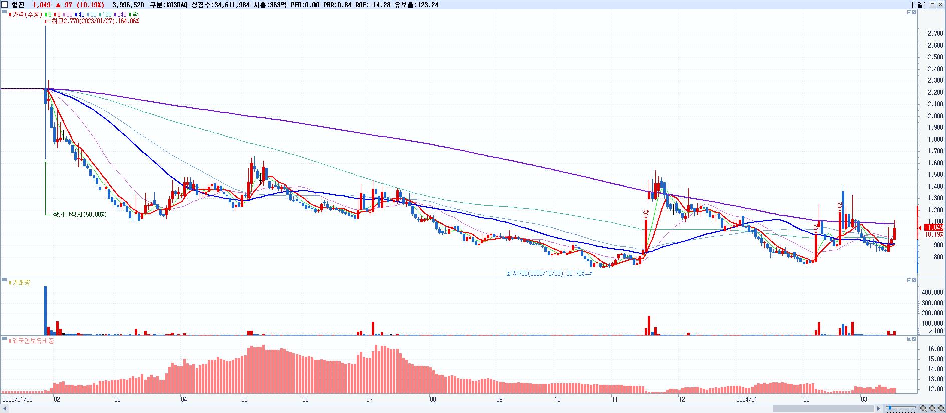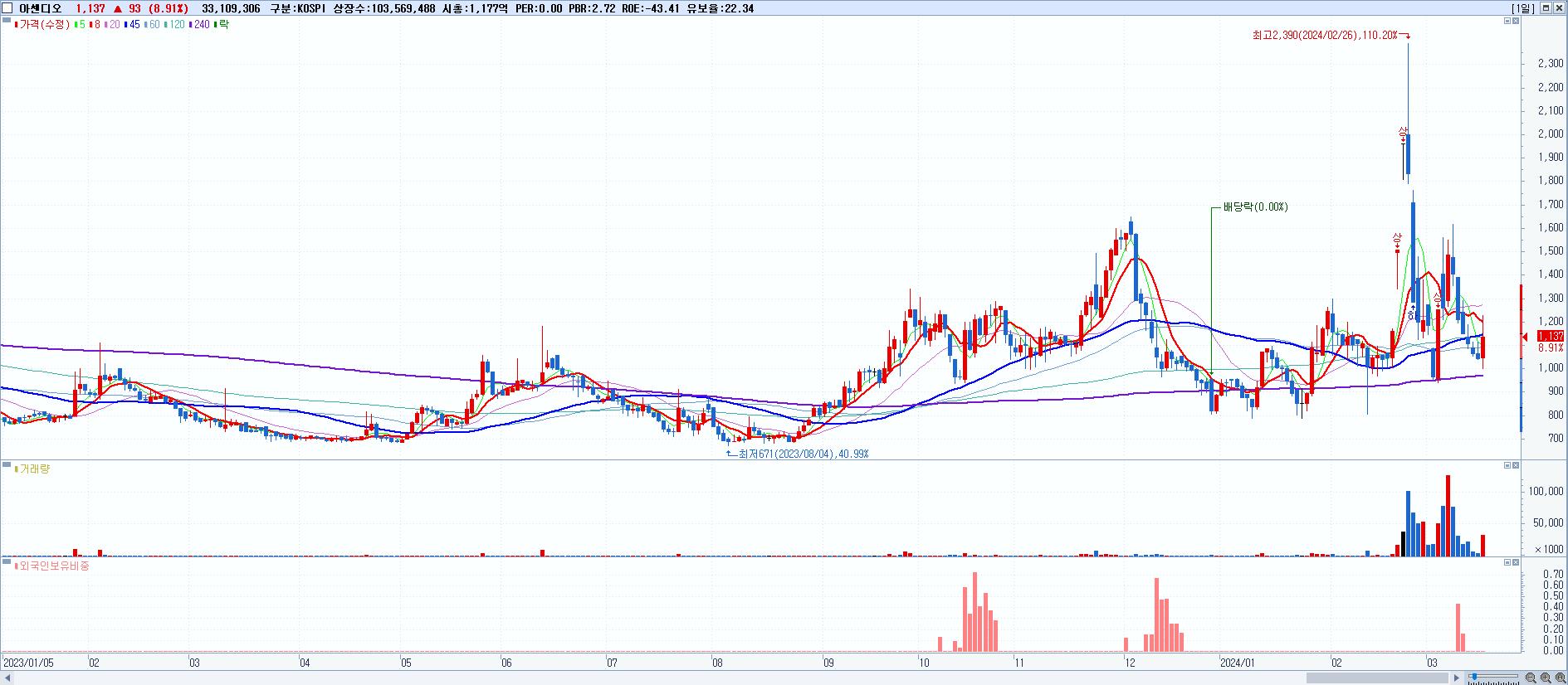 시총: 2,334억 거래량: 12,834,633 거래대금:1,005억