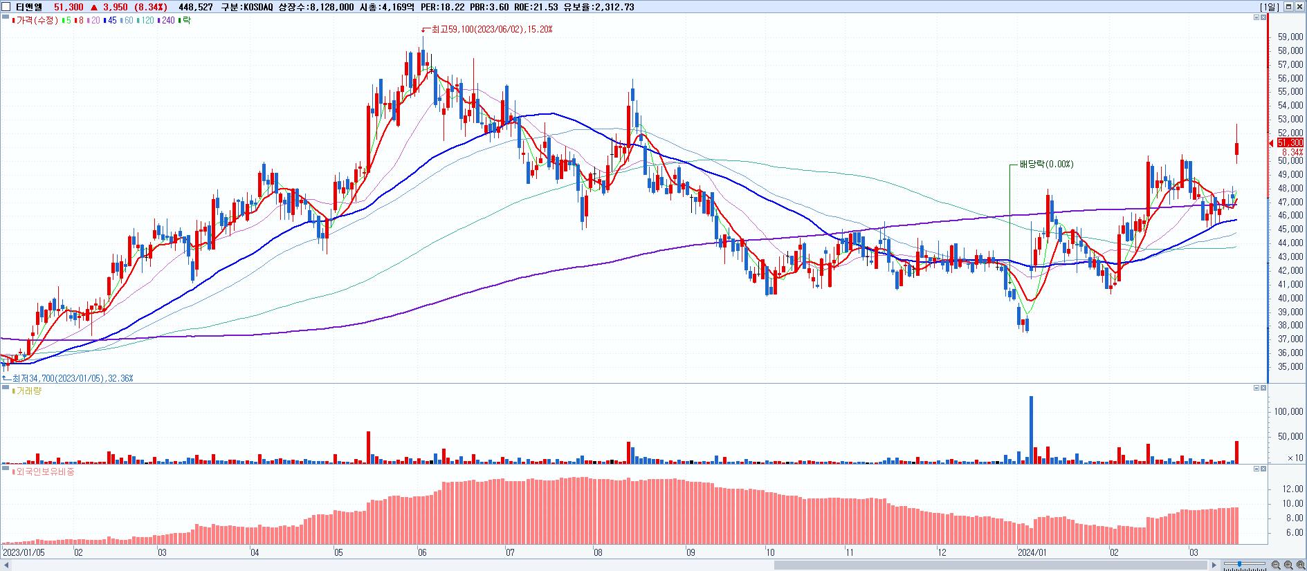 30.티앤엘 51,300원 ▲ 8.34% (KOSDAQ, 340570)