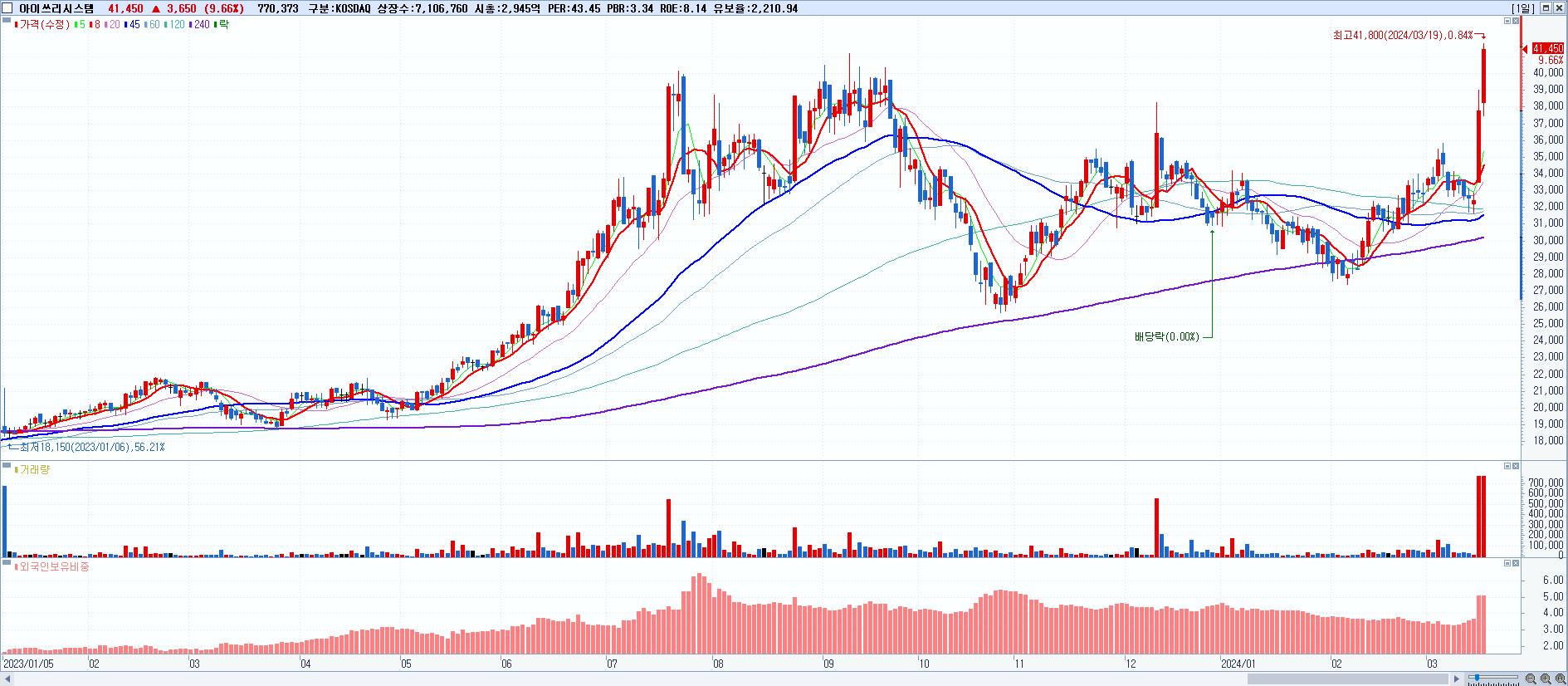 28.아이쓰리시스템 41,450원 ▲ 9.66% (KOSDAQ, 214430)