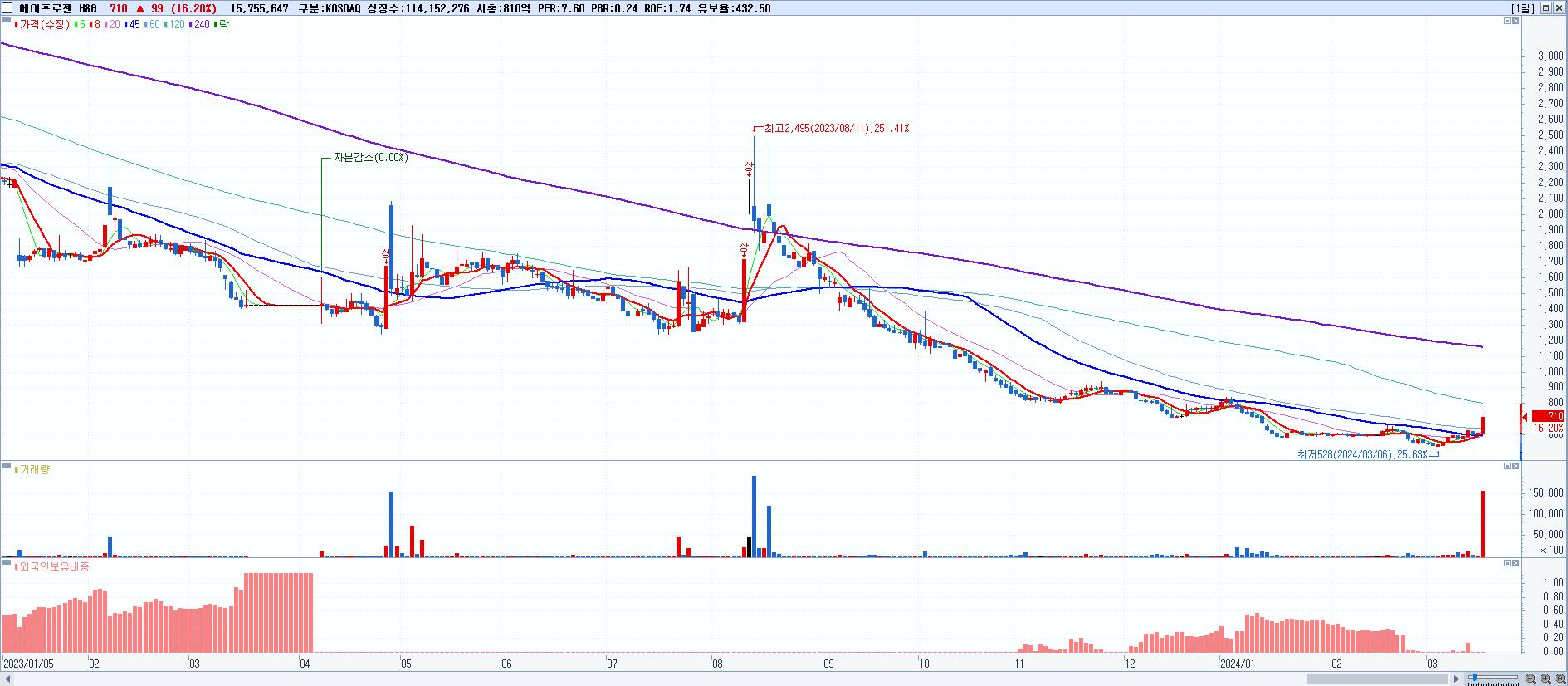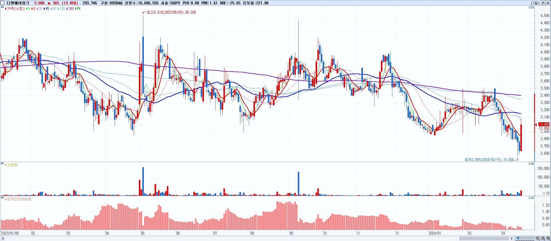 시총: 4,170억 거래량: 448,527 거래대금:230억