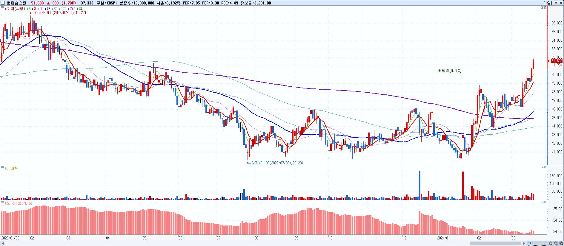 현대홈쇼핑 51,600원 ▲ 1.78% (KOSPI, 057050)