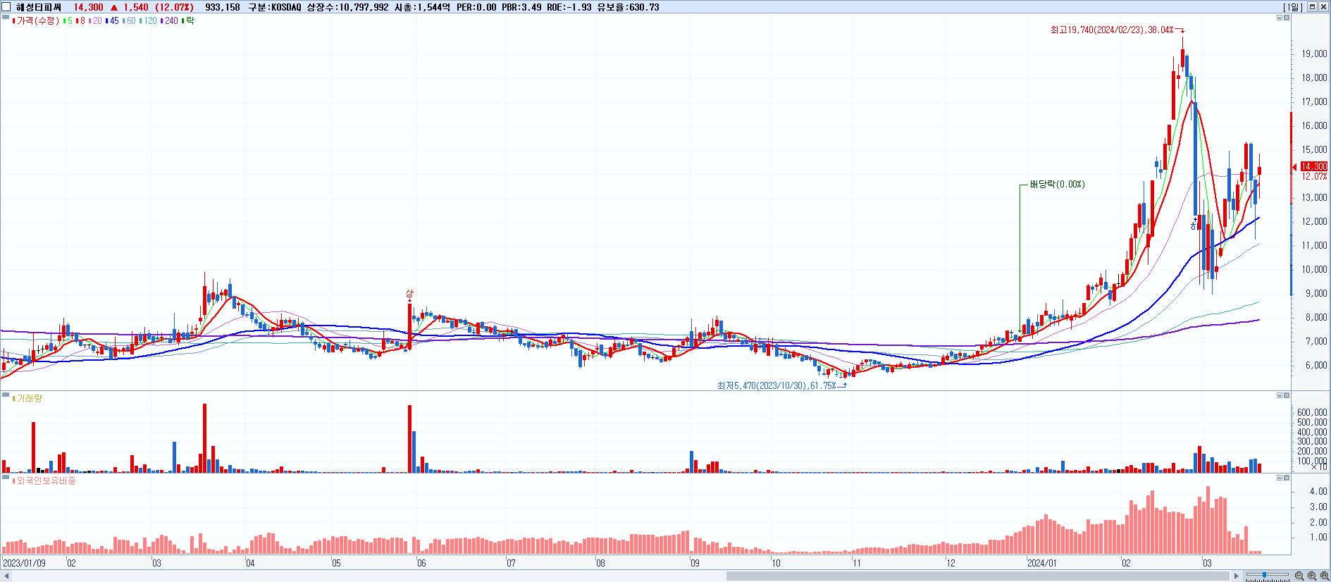 29.해성티피씨 14,300원 ▲ 12.07% (KOSDAQ, 059270)