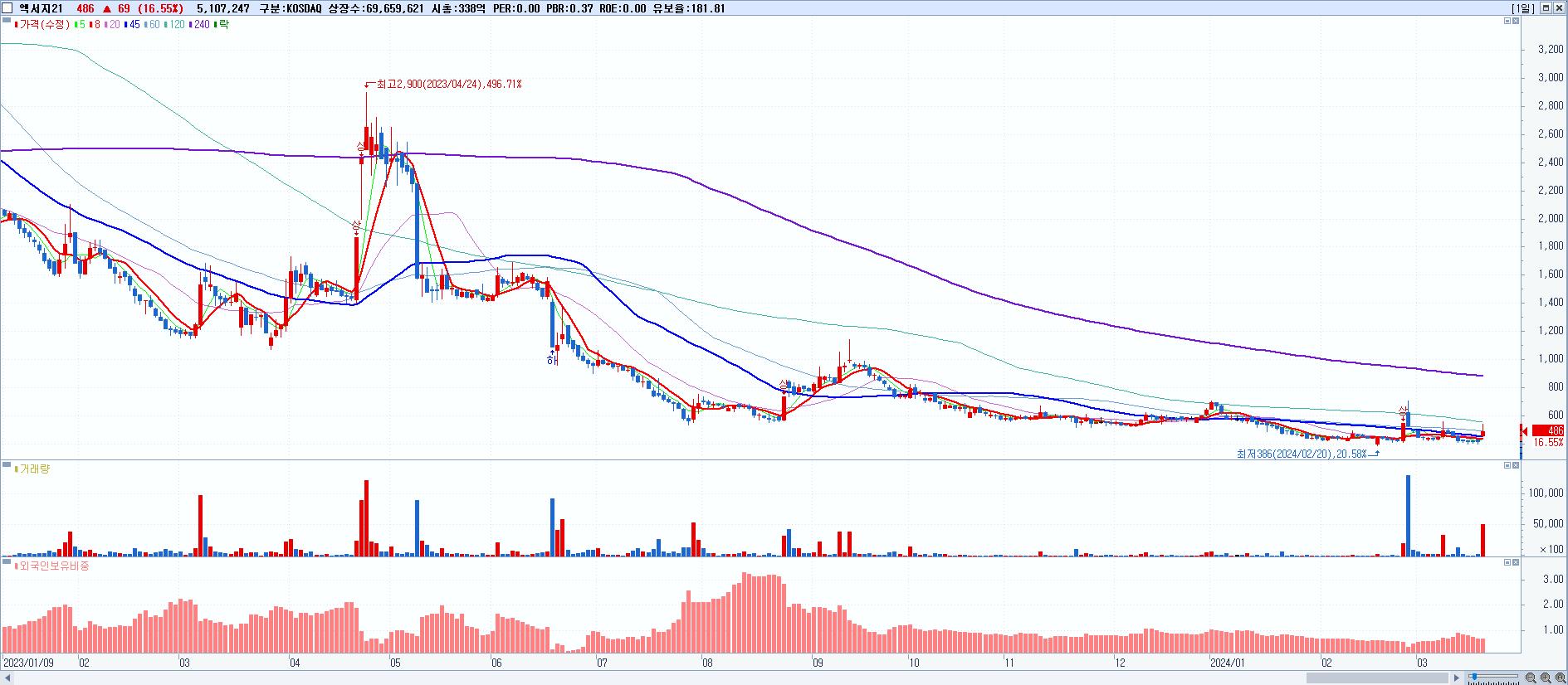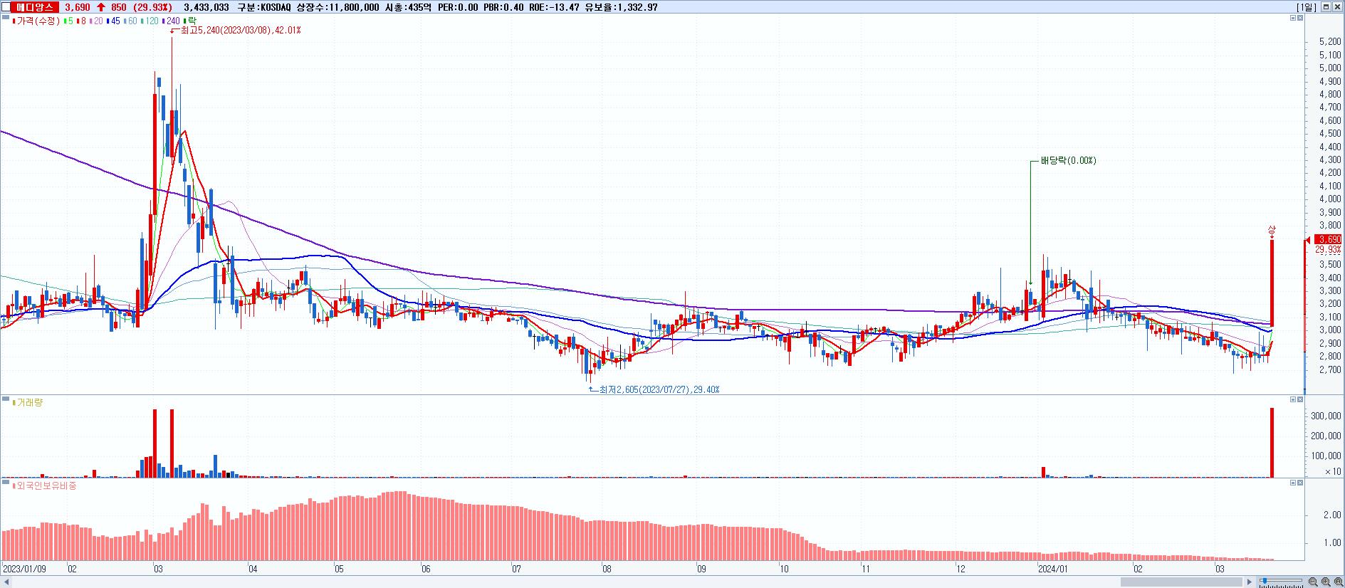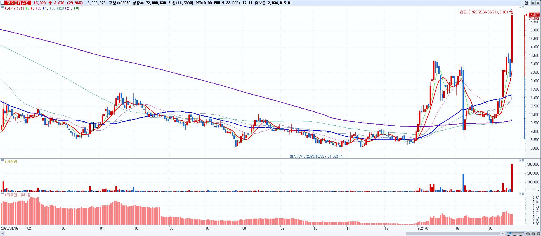 시총: 907억 거래량: 4,438,951 거래대금:92억