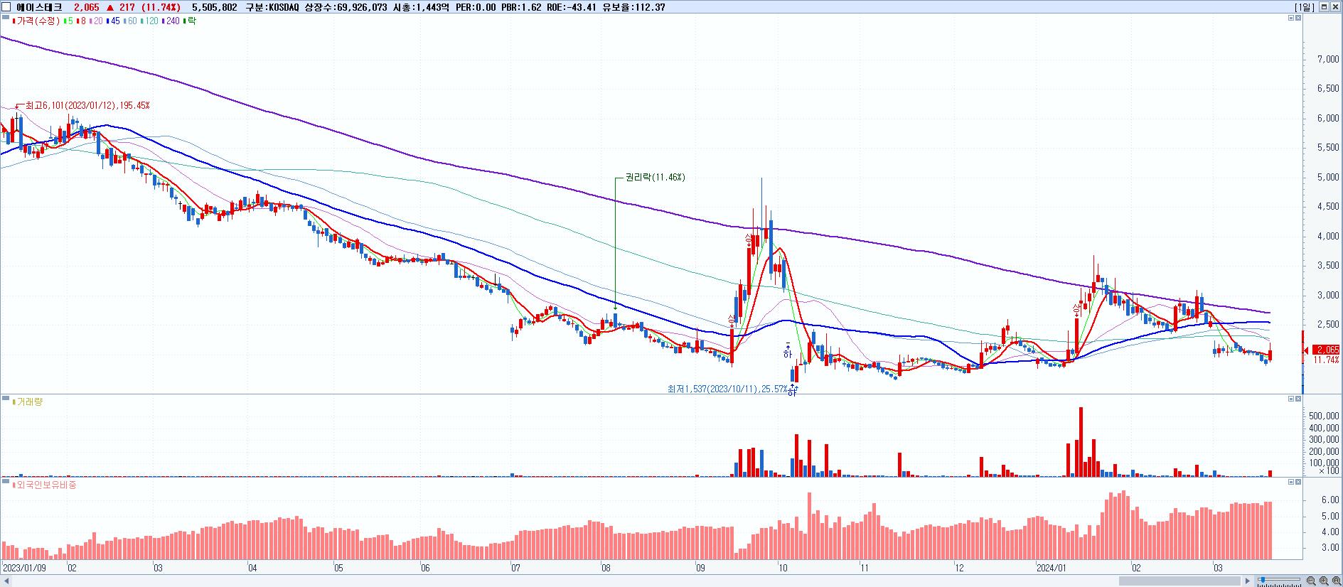 시총: 1,544억 거래량: 933,158 거래대금:132억