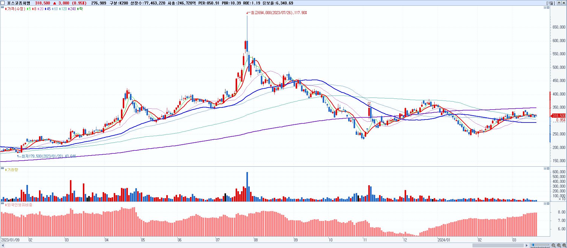 - 포스코퓨처엠 (318,500원 ▲ 0.95% , 시총: 246,720억, 외국인 순매수 거래금:96억)