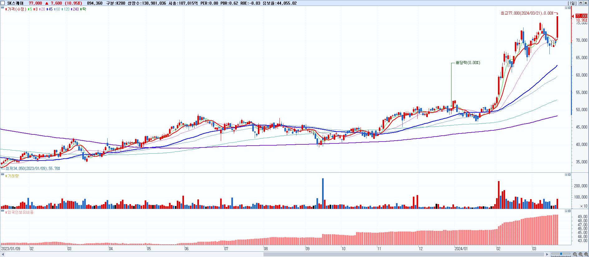 시총: 98,070억 거래량: 388,090 거래대금:747억