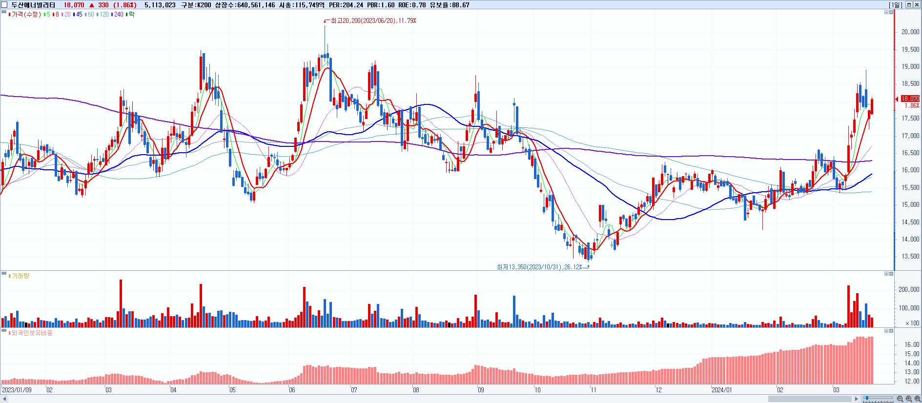 - 두산에너빌리티 (18,070원 ▲ 1.86% , 시총: 115,749억, 외국인 순매수 거래금:137억)