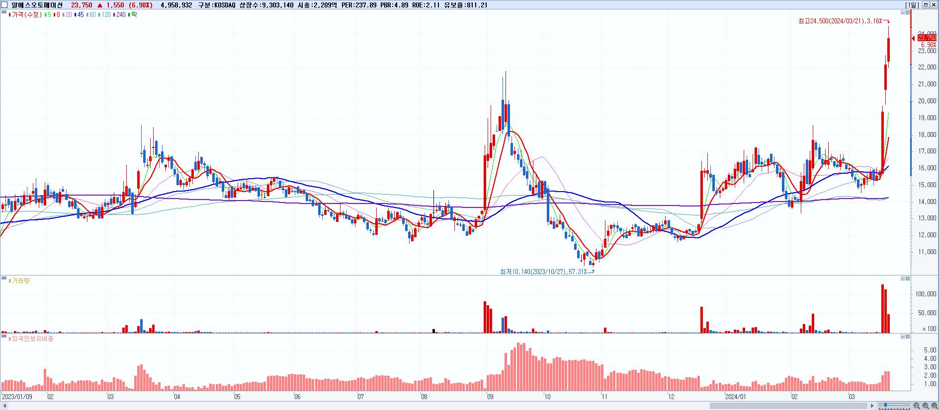 29.알에스오토메이션 23,750원 ▲ 6.98% (KOSDAQ, 140670)
