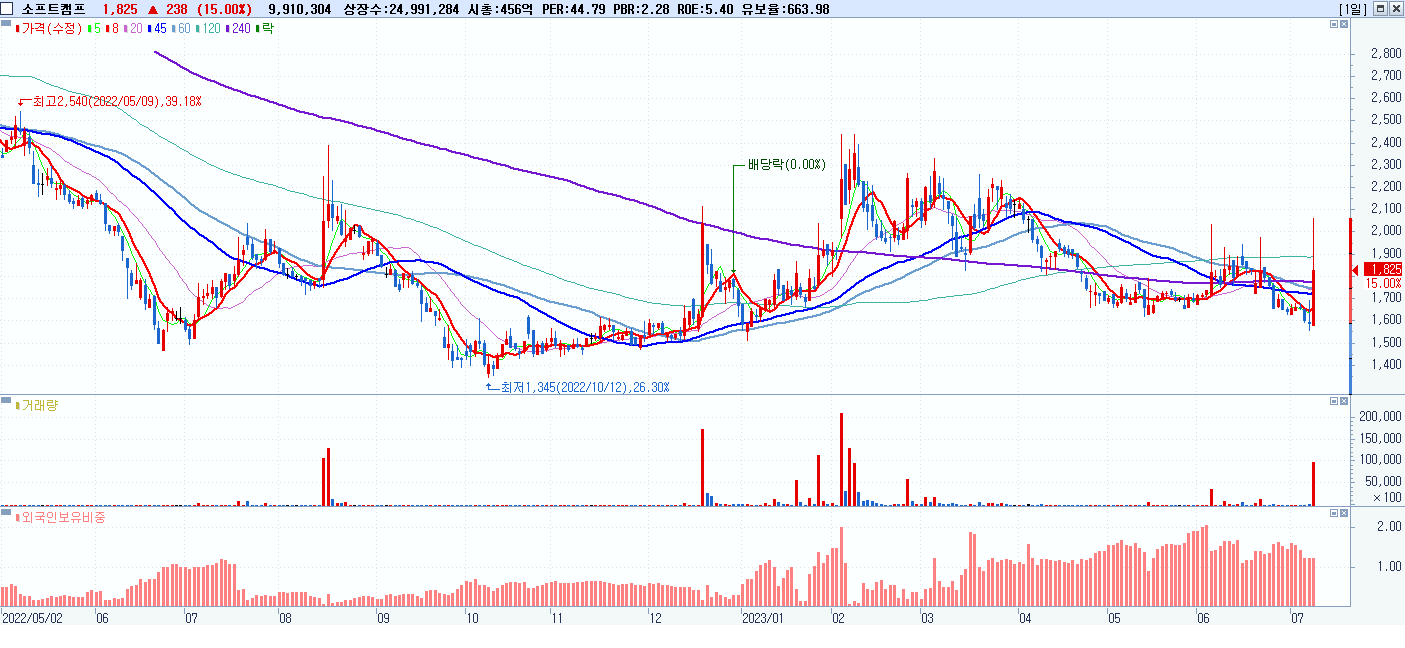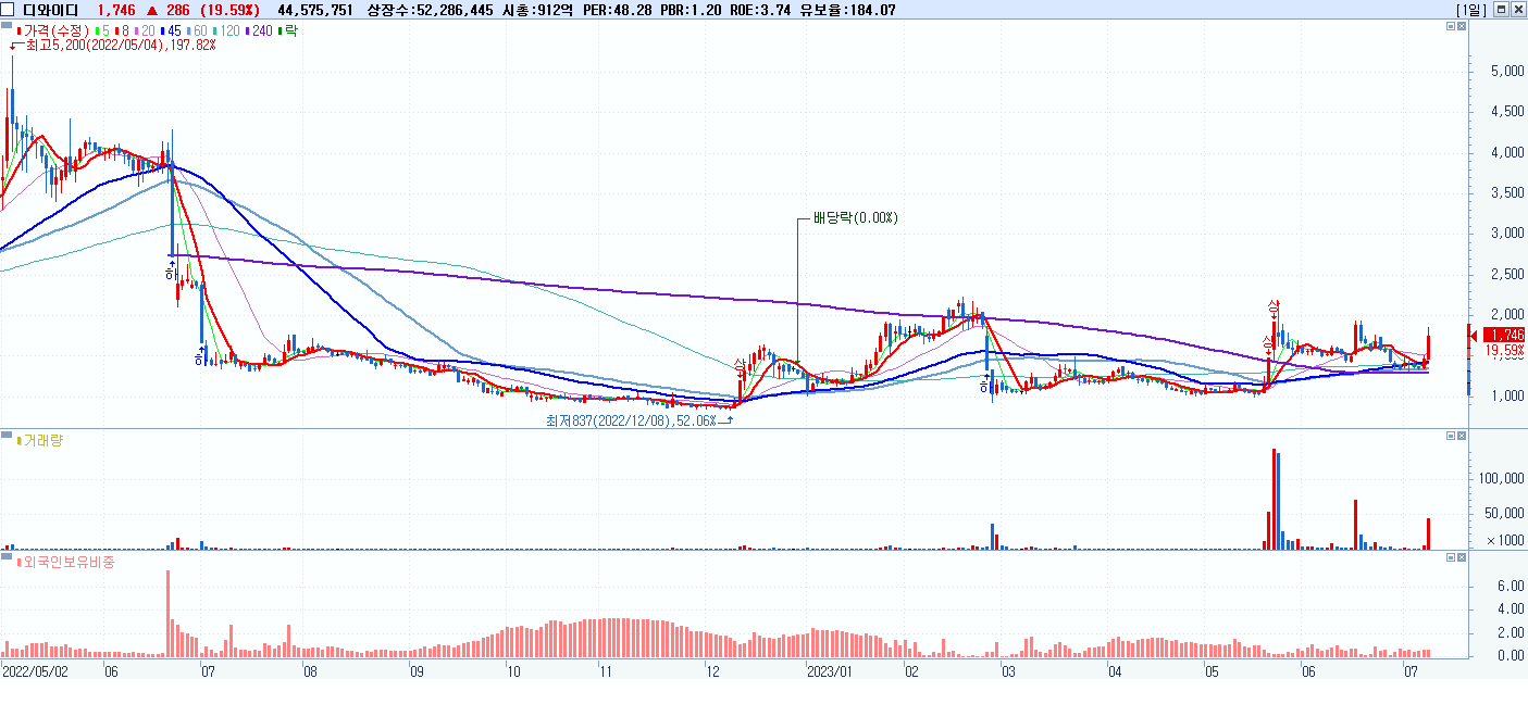 시총: 2,493억 거래량: 2,175,848 거래대금:187억