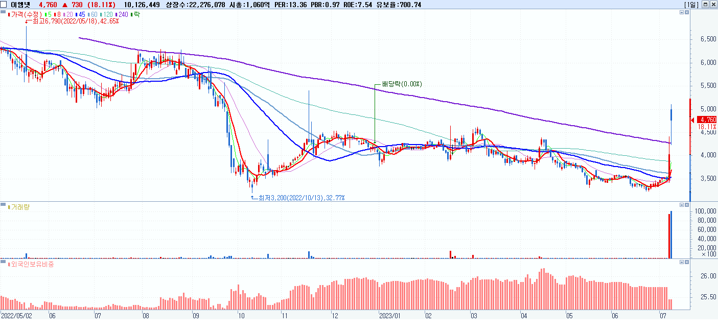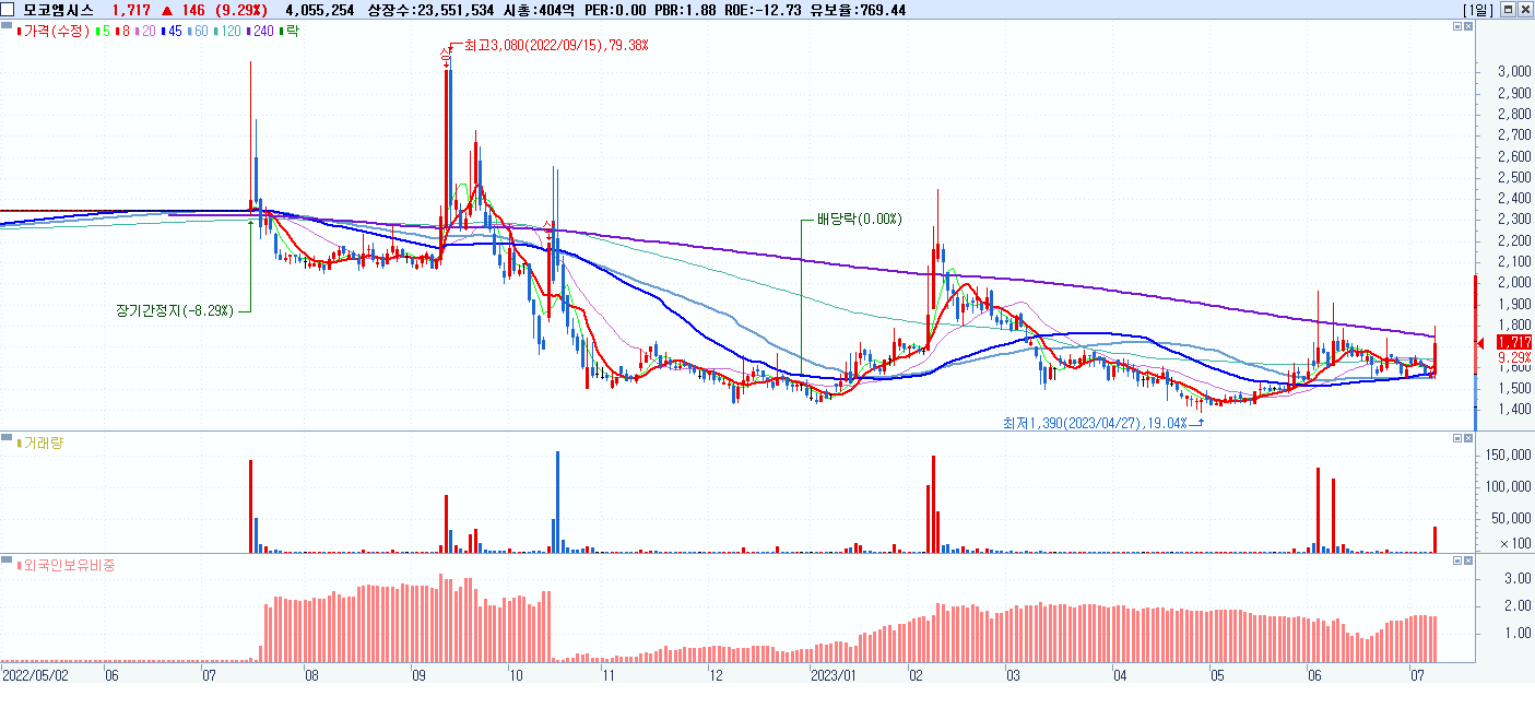 시총: 404억 거래량: 4,062,424 거래대금:69억