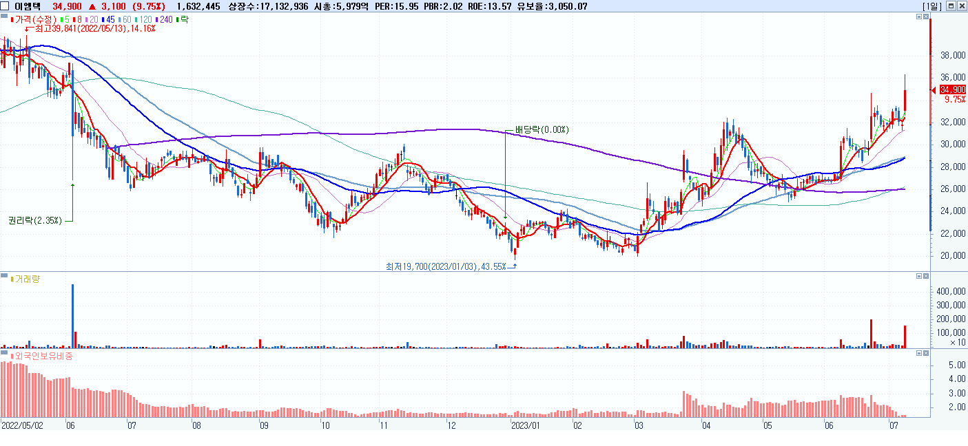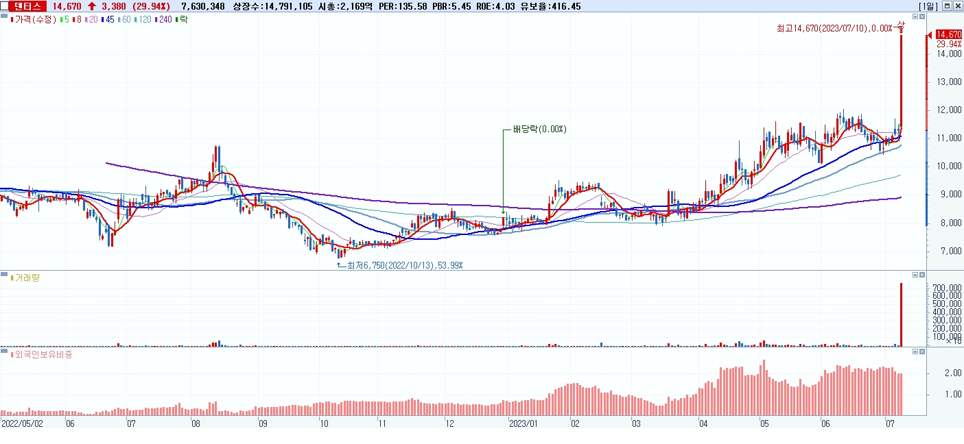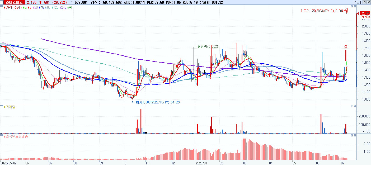 시총: 2,170억 거래량: 7,632,948 거래대금:1,058억