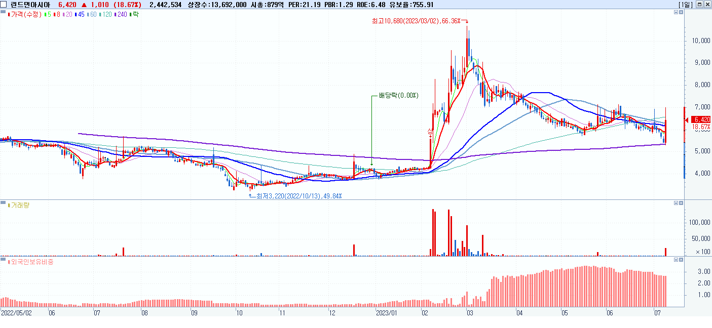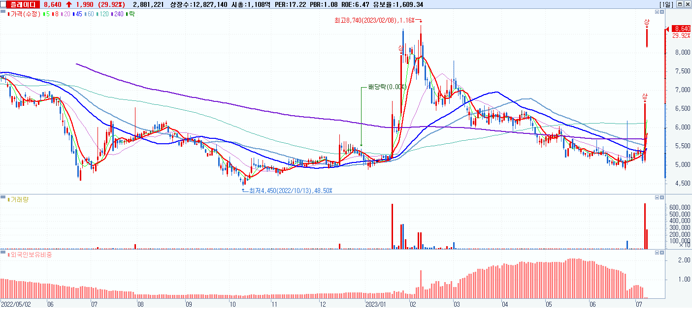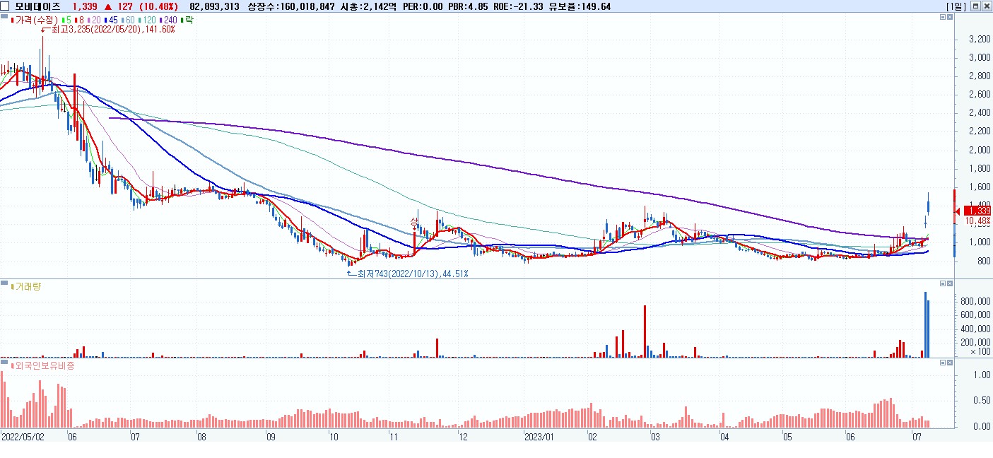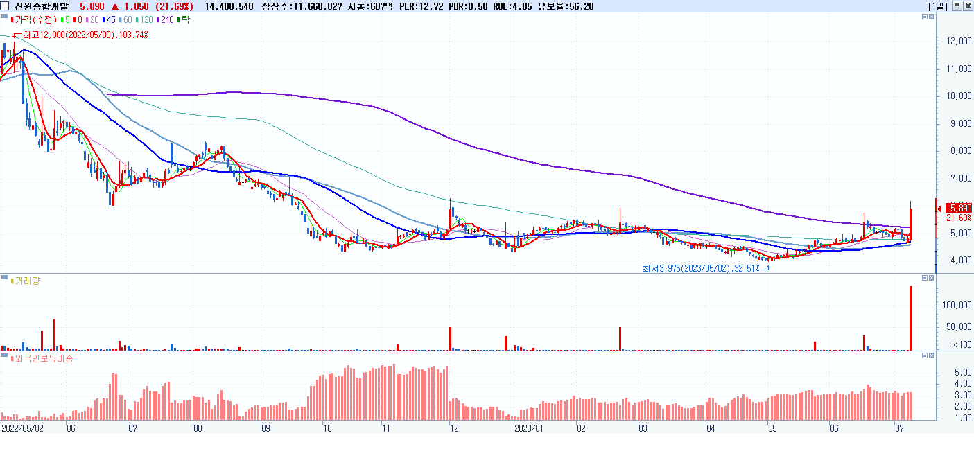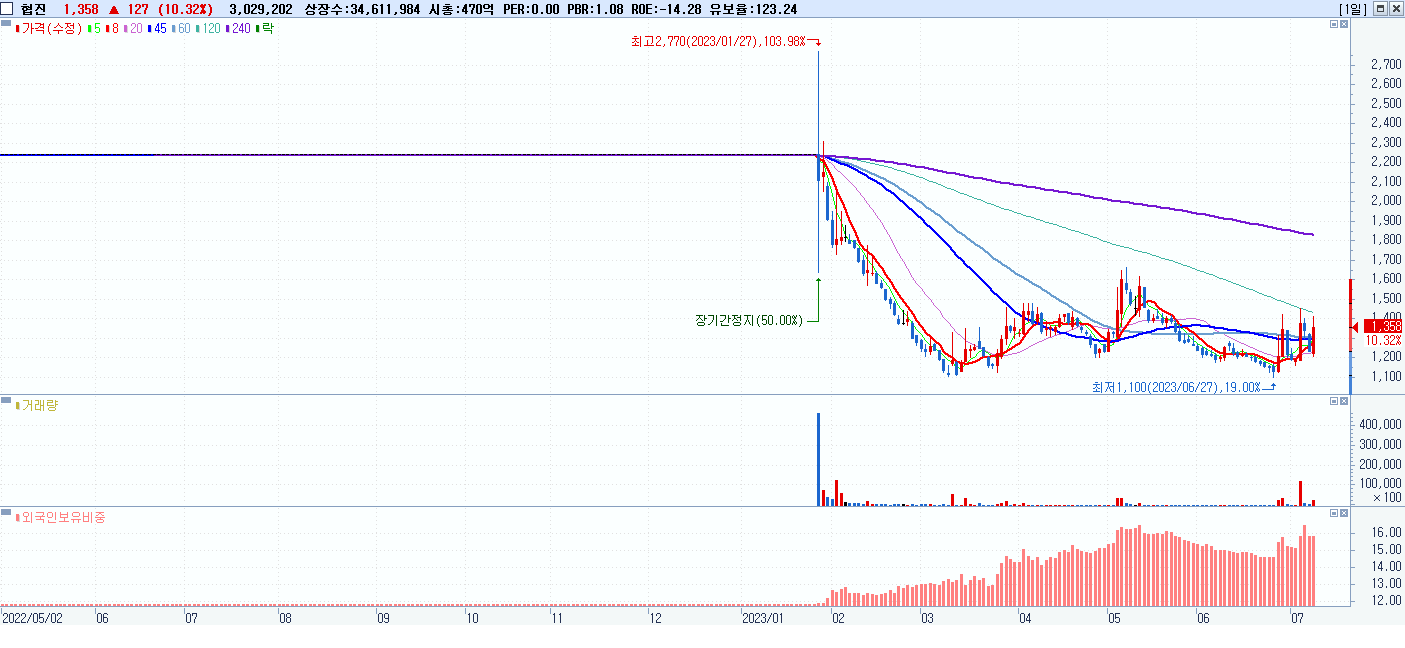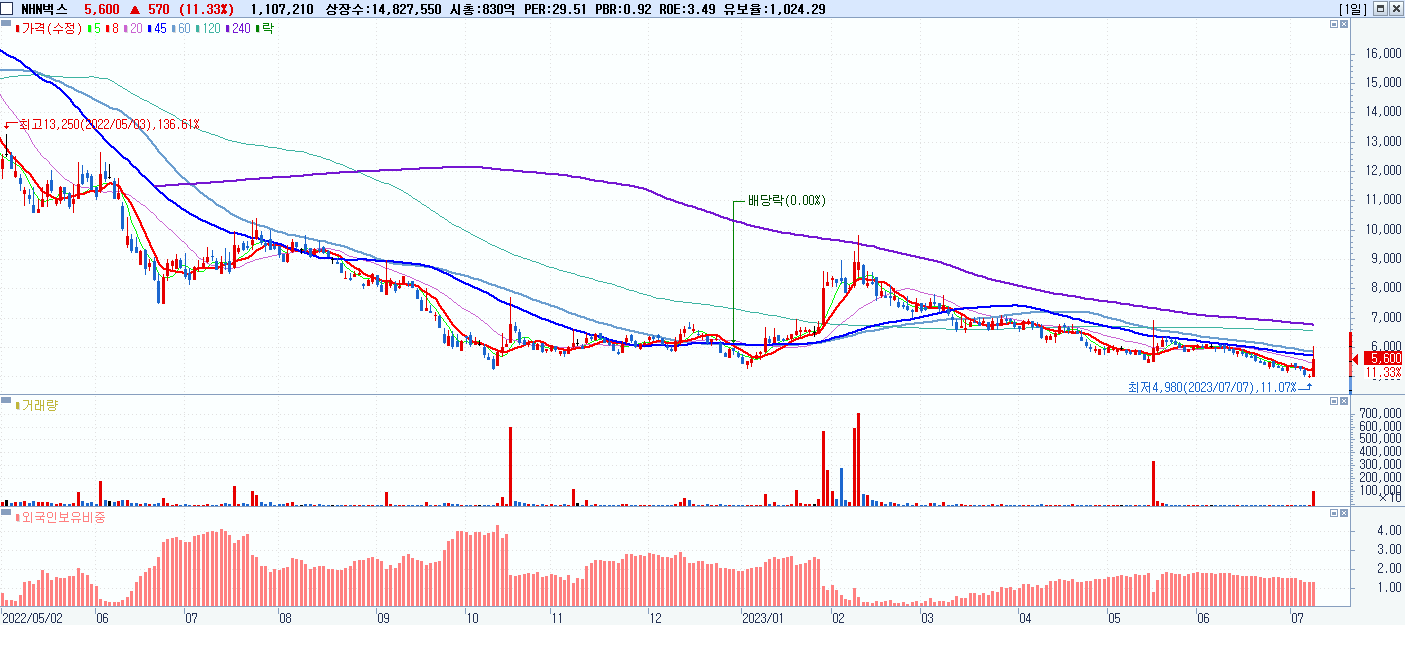 시총: 687억 거래량: 14,468,011 거래대금:834억