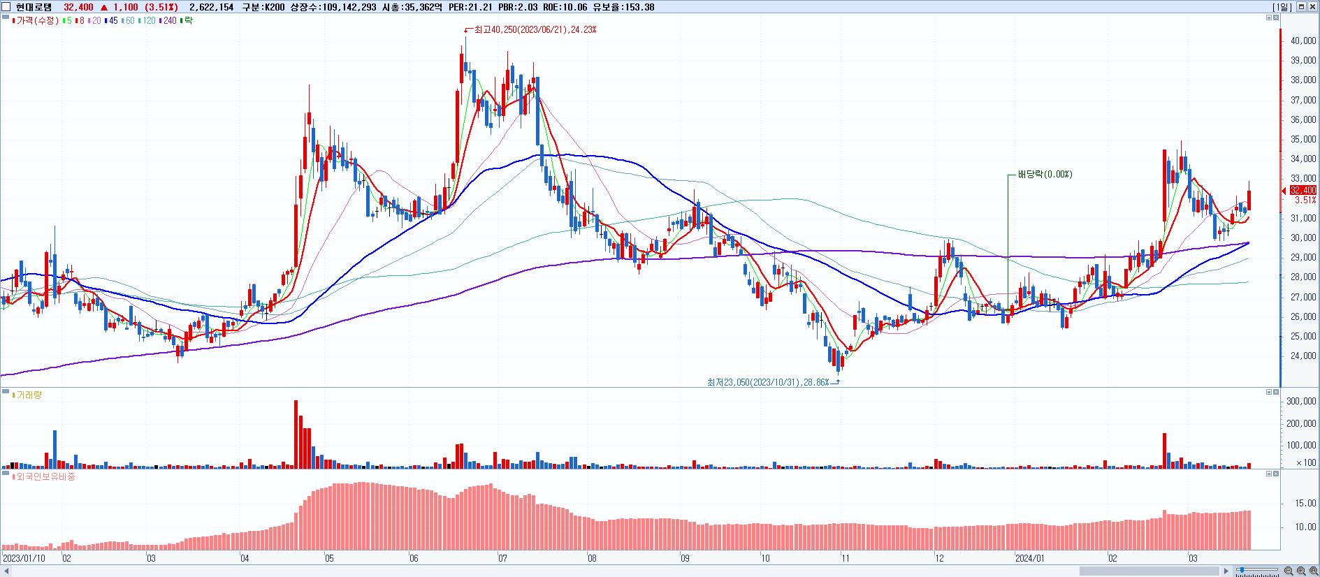 - 현대로템 (32,400원 ▲ 3.51% , 시총: 35,362억, 외국인 순매수 거래금:85억)