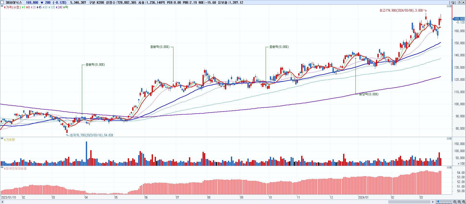 2.SK하이닉스 169,800원 ▼ -0.12% (KOSPI, 000660)