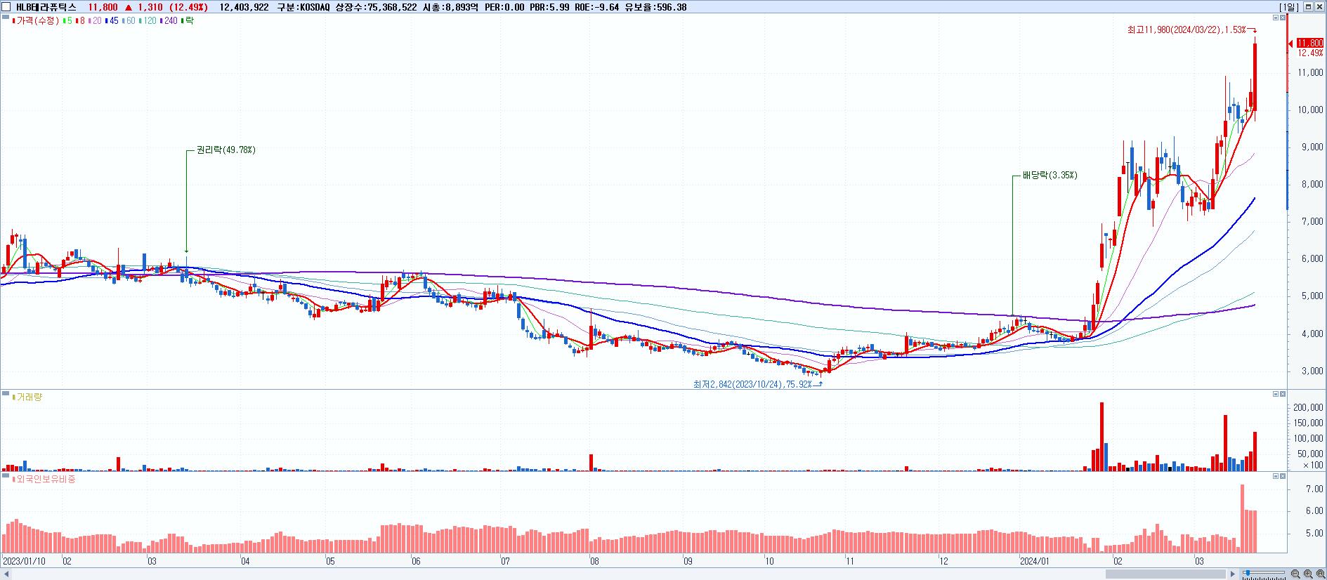 HLB테라퓨틱스 11,800원 ▲ 12.49% (KOSDAQ, 115450)