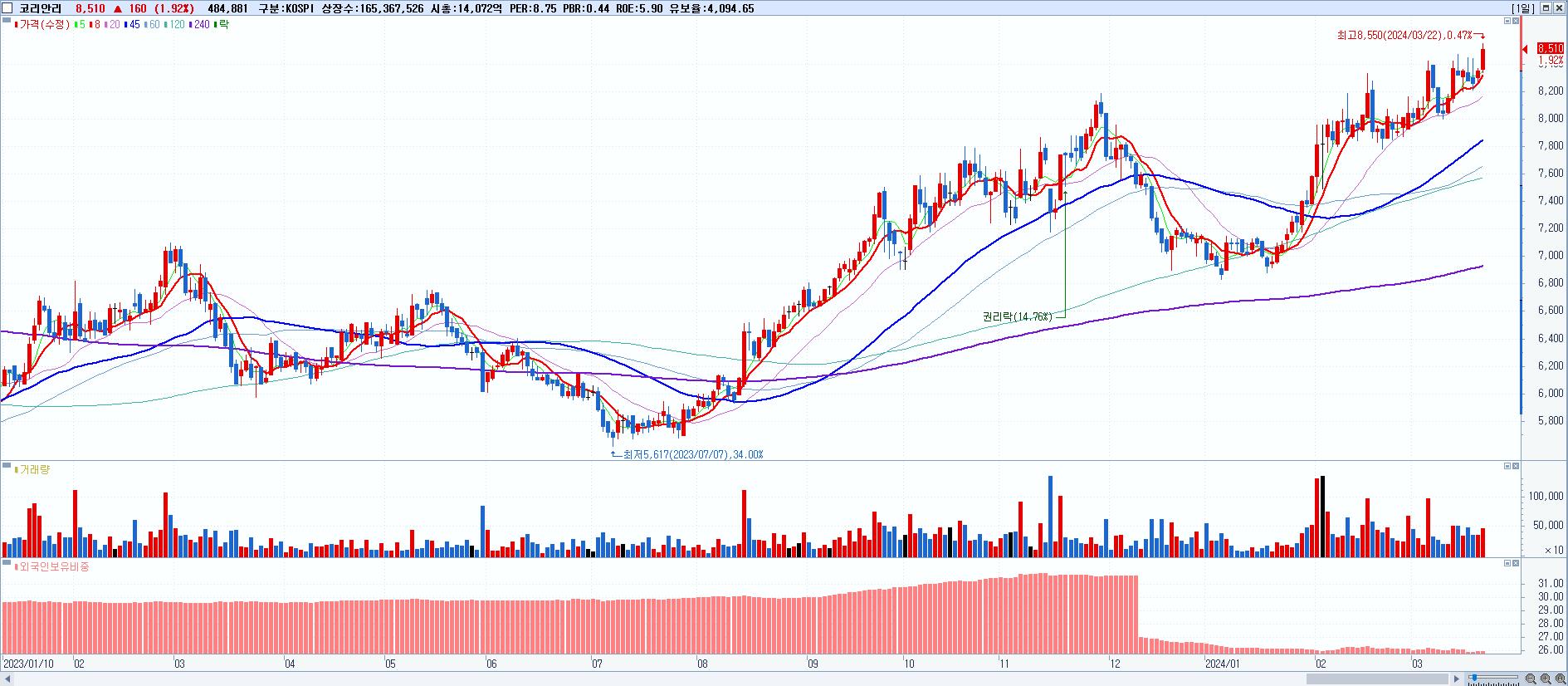 코리안리 8,510원 ▲ 1.92% (KOSPI, 003690)