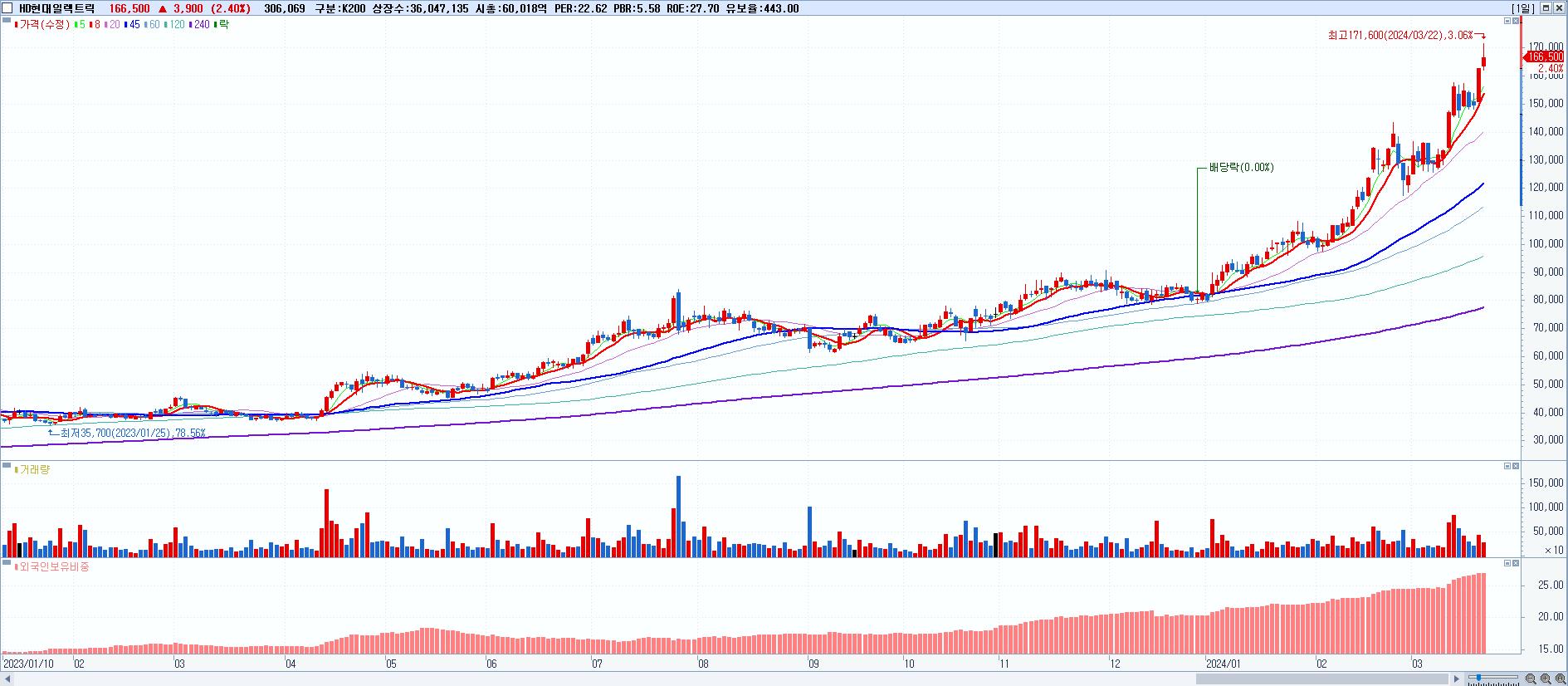 - HD현대일렉트릭 (166,500원 ▲ 2.4% , 시총: 60,018억, 거래량: 306,095, 거래대금:506억, KOSPI)
