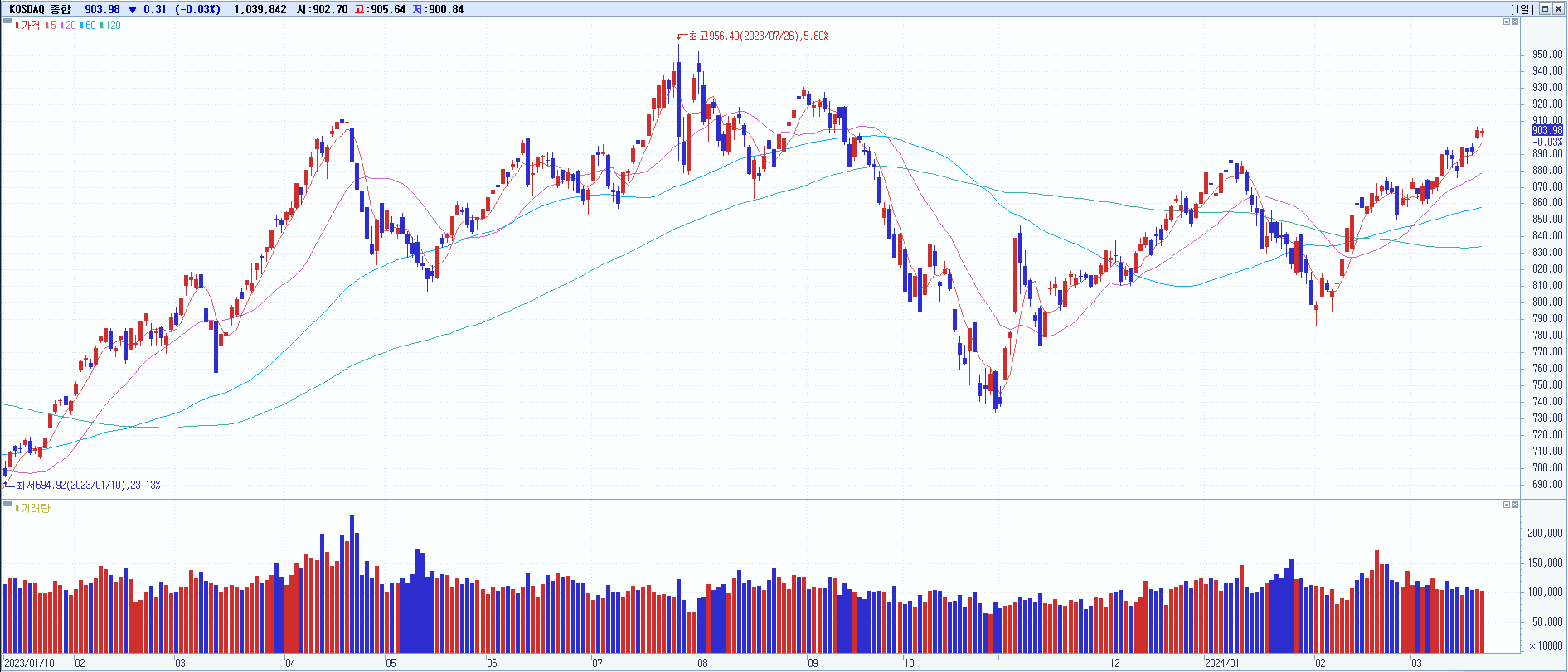 코스닥 KOSDAQ 903.98 (▼-0.31) -0.03%