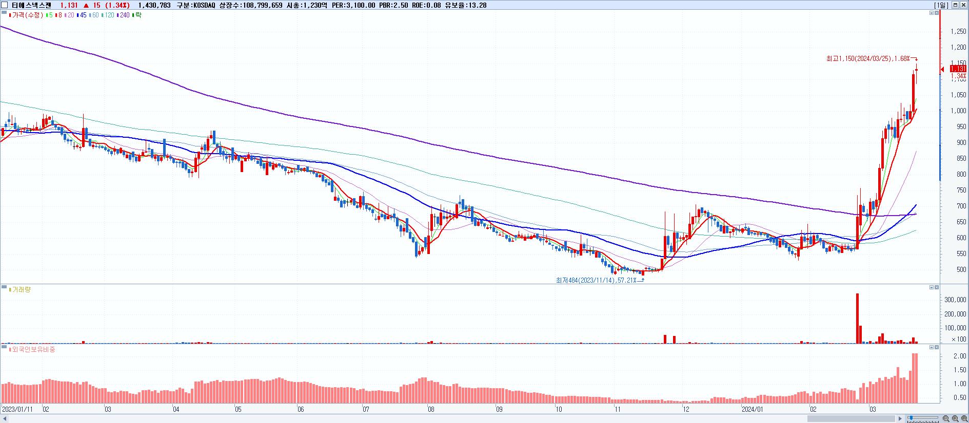 티에스넥스젠 1,131원 ▲ 1.34% (KOSDAQ, 043220)