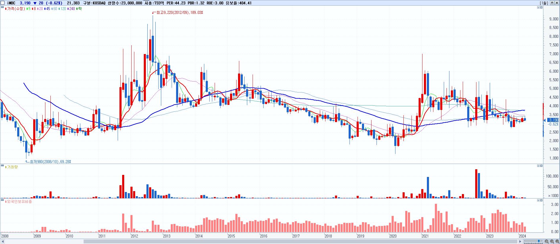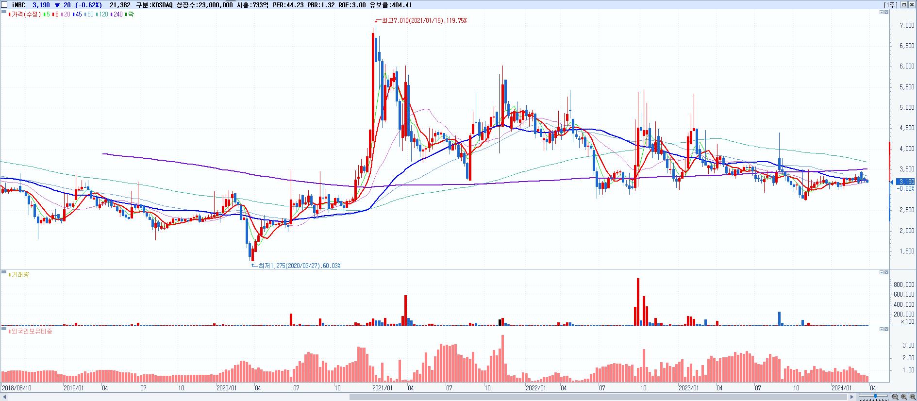 iMBC (3,210원 , 시총: 738억, 거래량: 78,995, 거래대금:3억)