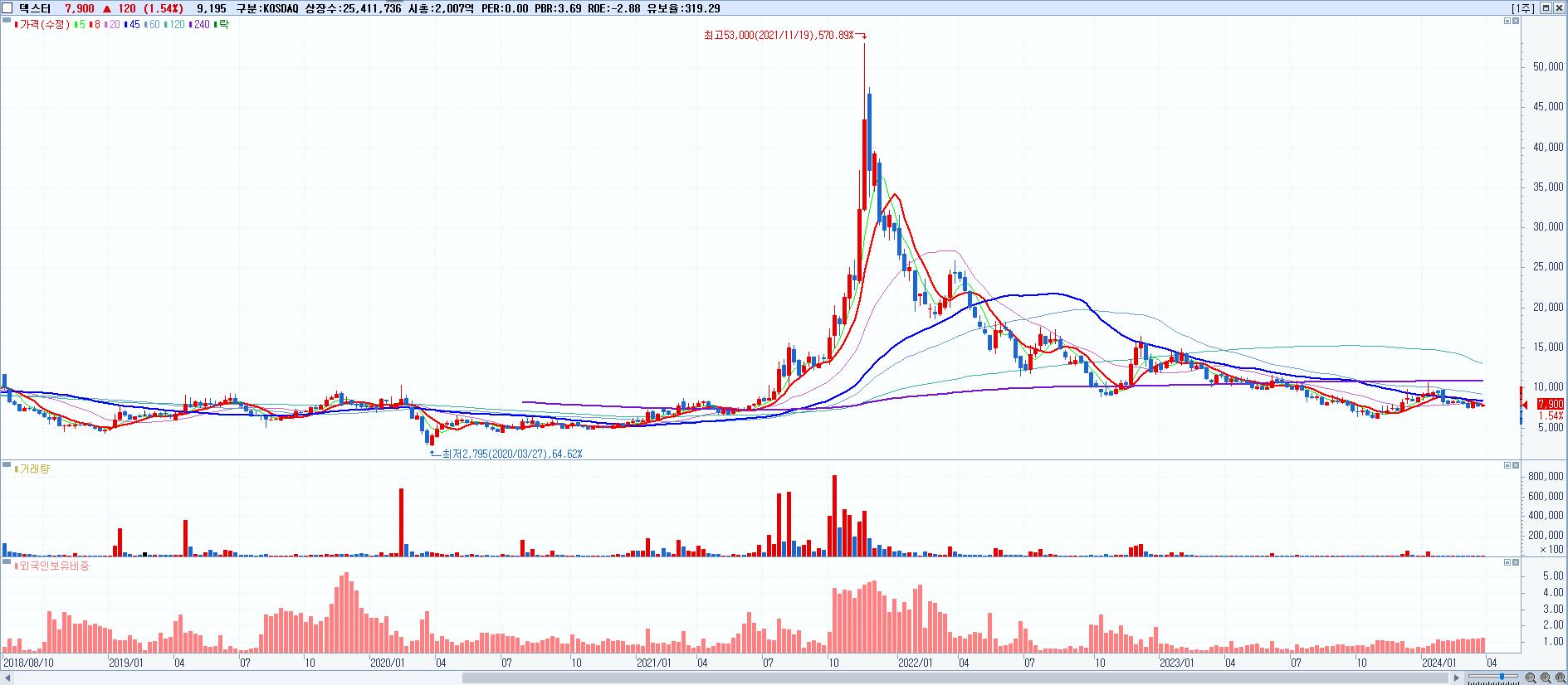 4.덱스터 7,780원 ▲ 0.13% (KOSDAQ, 206560)