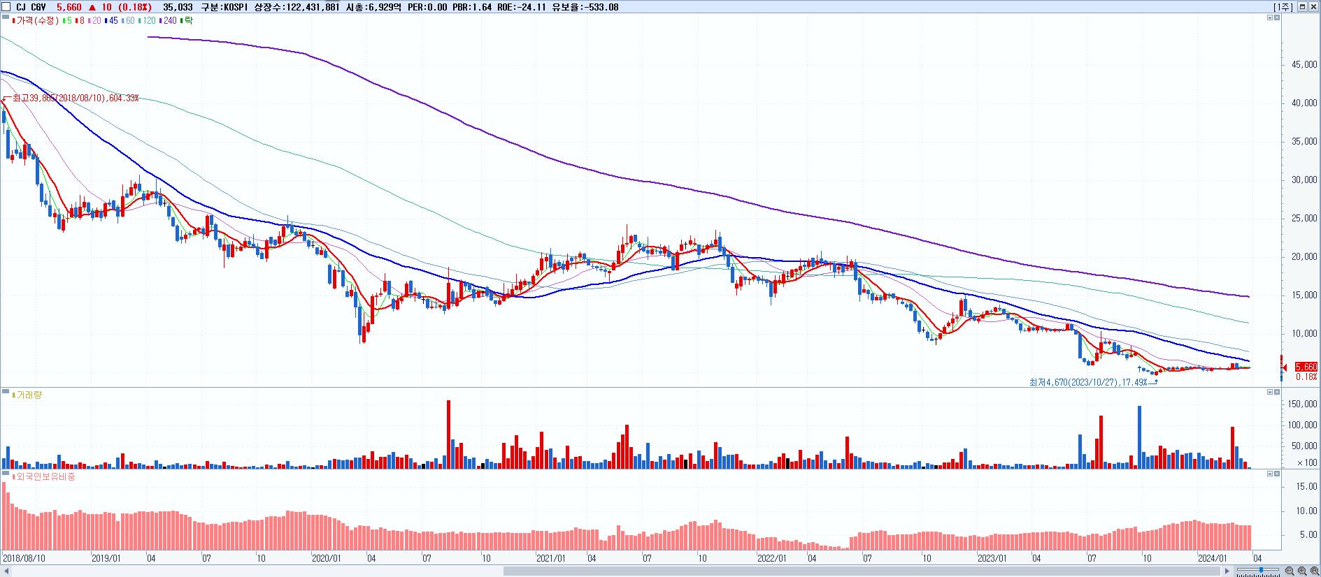 2.CJ CGV 5,650원 ▼ -0.88% (KOSPI, 079160)