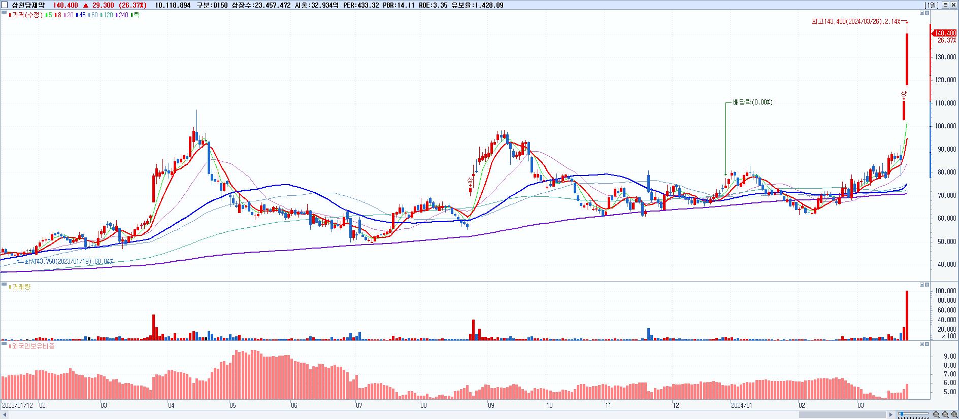 삼천당제약 140,400원 ▲ 26.37% (KOSDAQ, 000250)