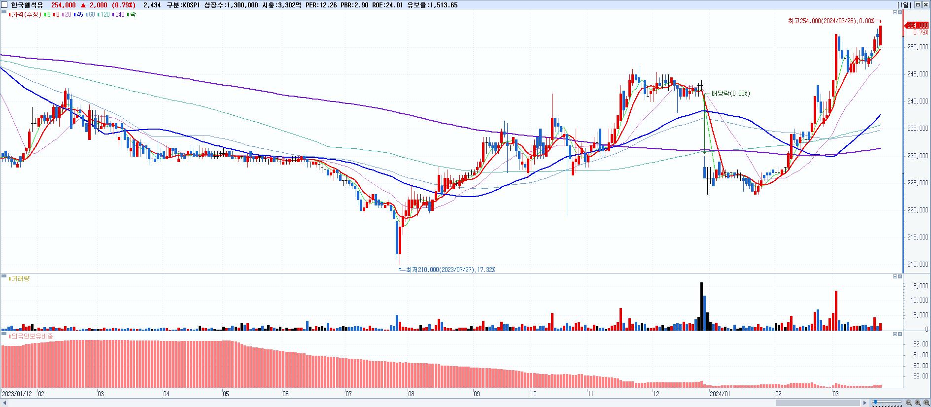 한국쉘석유 254,000원 ▲ 0.79% (KOSPI, 002960)
