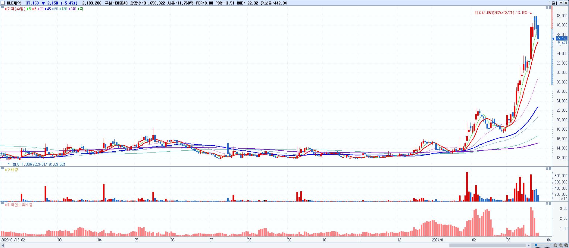 30.HLB제약 37,150원 ▼ -5.47% (KOSDAQ, 047920)