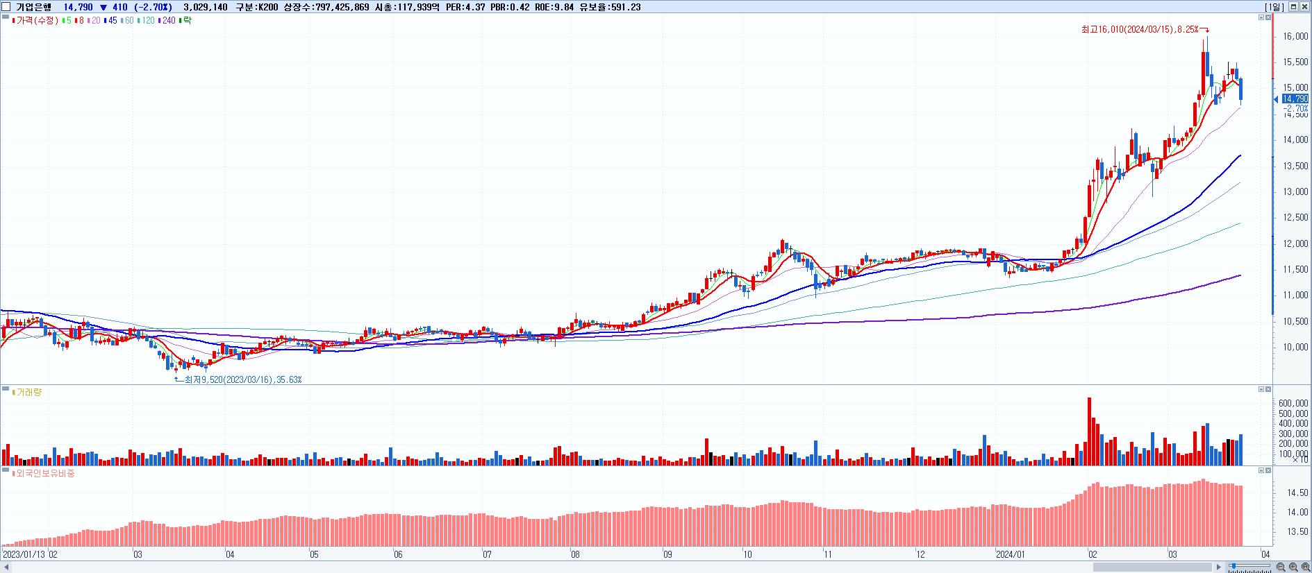 29.기업은행 14,790원 ▼ -2.7% (KOSPI, 024110)