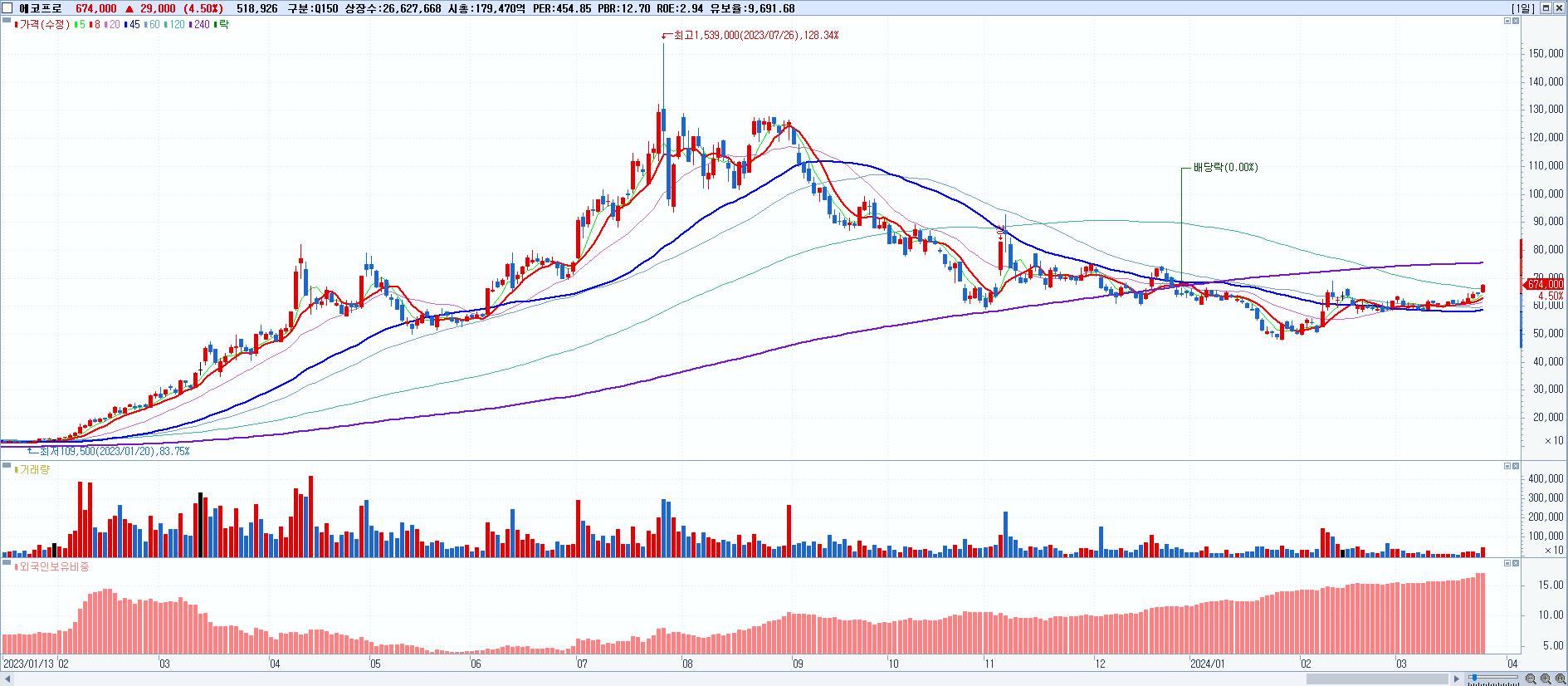 2.에코프로 674,000원 ▲ 4.5% (KOSDAQ, 086520)