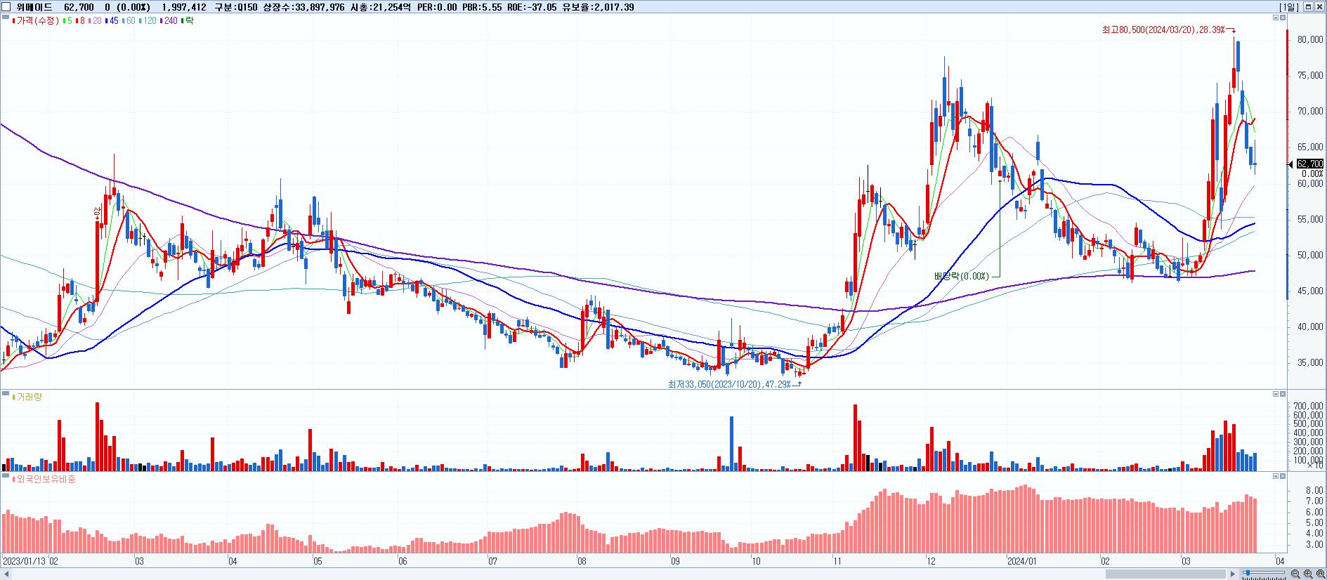| 3월 14일 | 33,350원 | ▲ 2.46% | ▲ 2.46% | -9억 | 78억 |