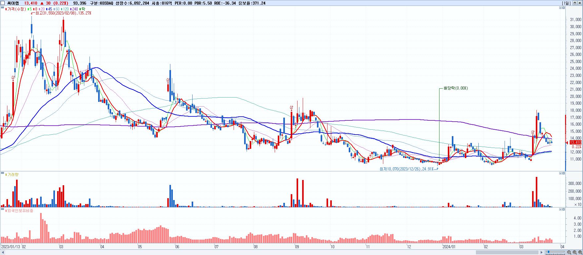 | 3월 25일 | 4,120원 | ▲ 53.73% | ▼ -0.6% | 1억 | 13억 |