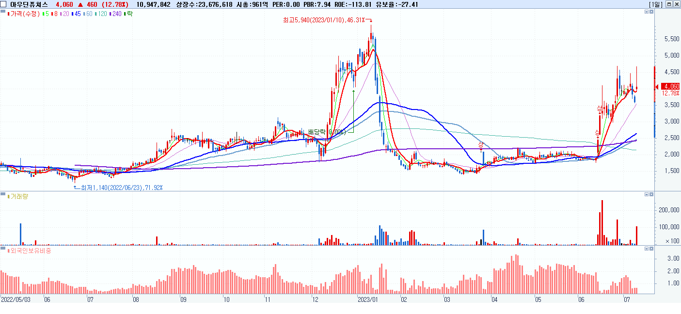 시총: 1,227억 거래량: 10,113,675 거래대금:941억