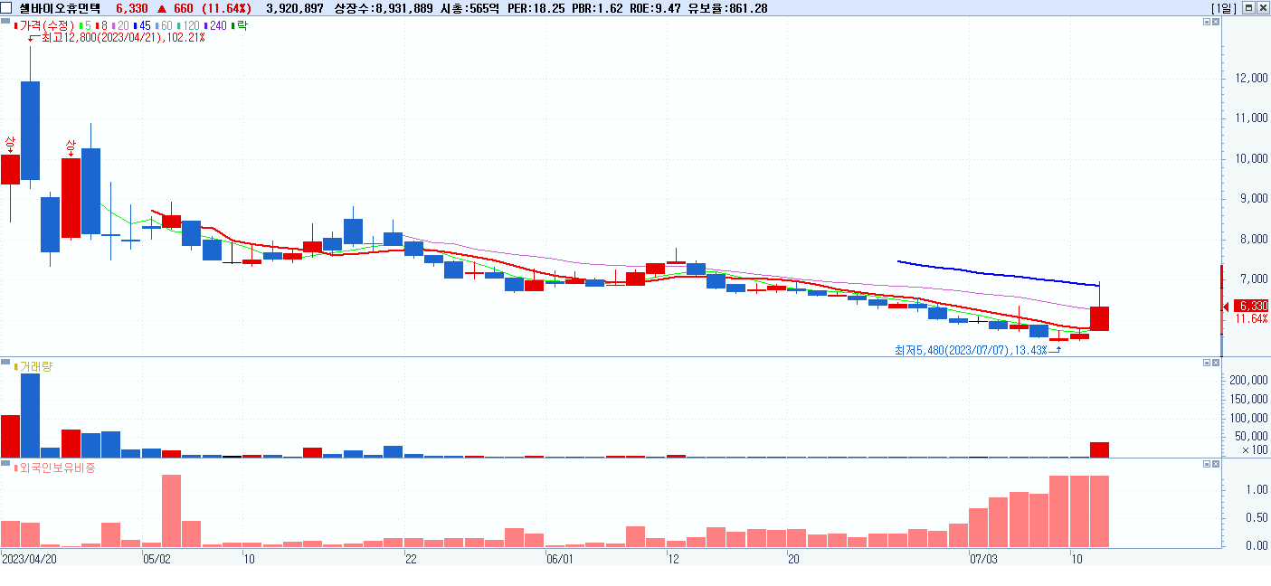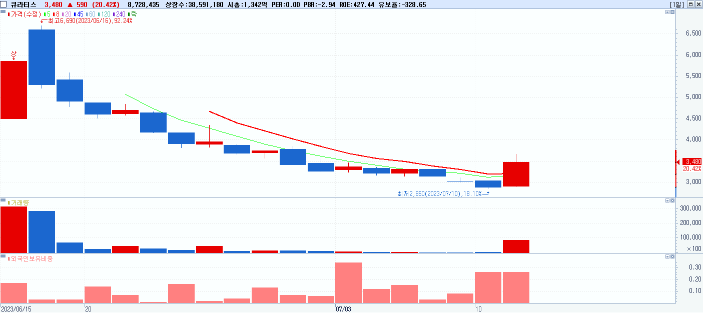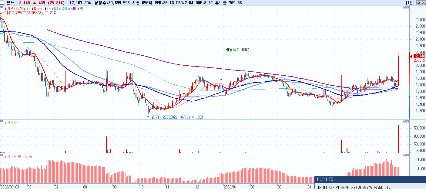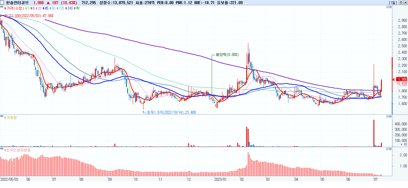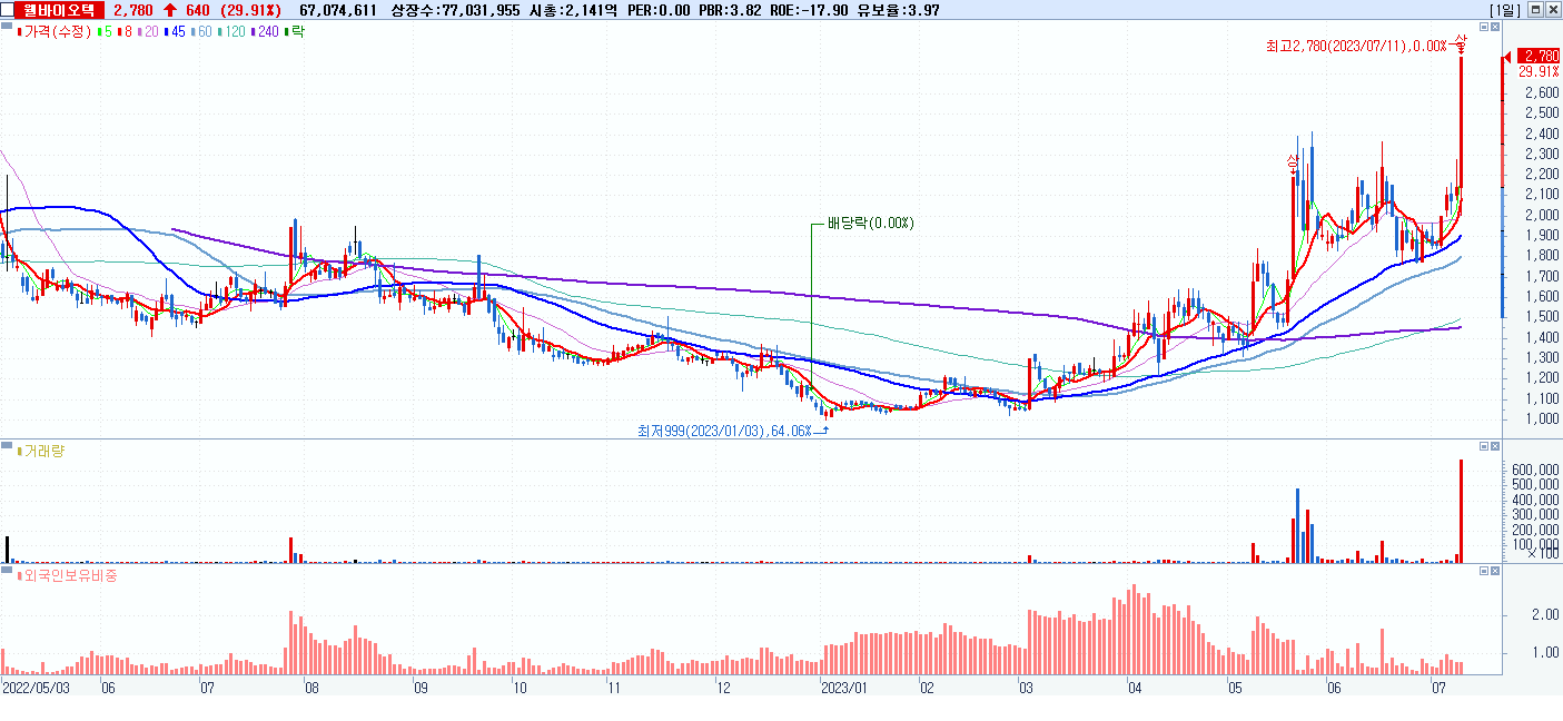 시총: 657억 거래량: 17,107,204 거래대금:358억