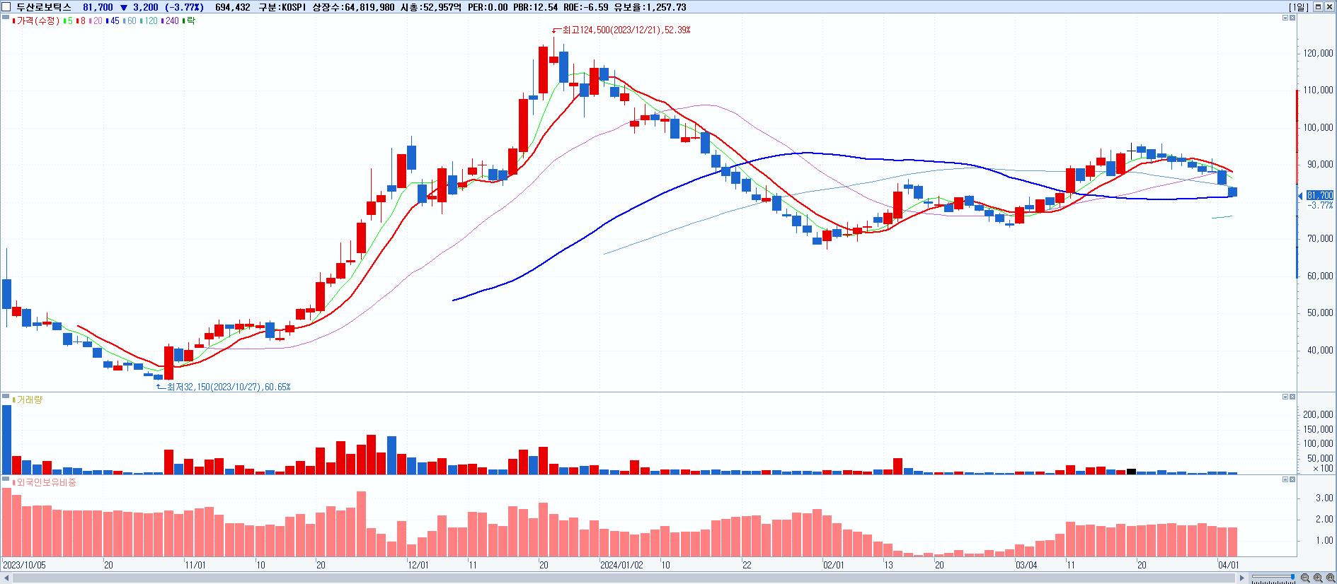 - 두산로보틱스 (81,700원 ▼ -3.77% , 시총: 52,958억, 외국인 순매수 거래금:85억)