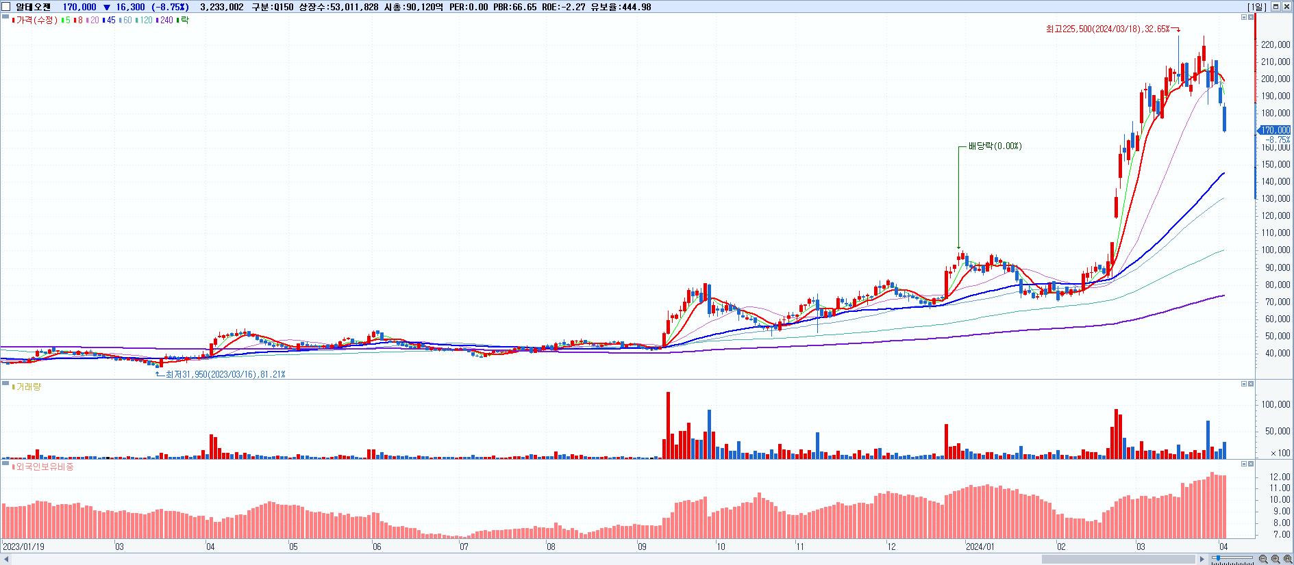 2.알테오젠 170,000원 ▼ -8.75% (KOSDAQ, 196170)