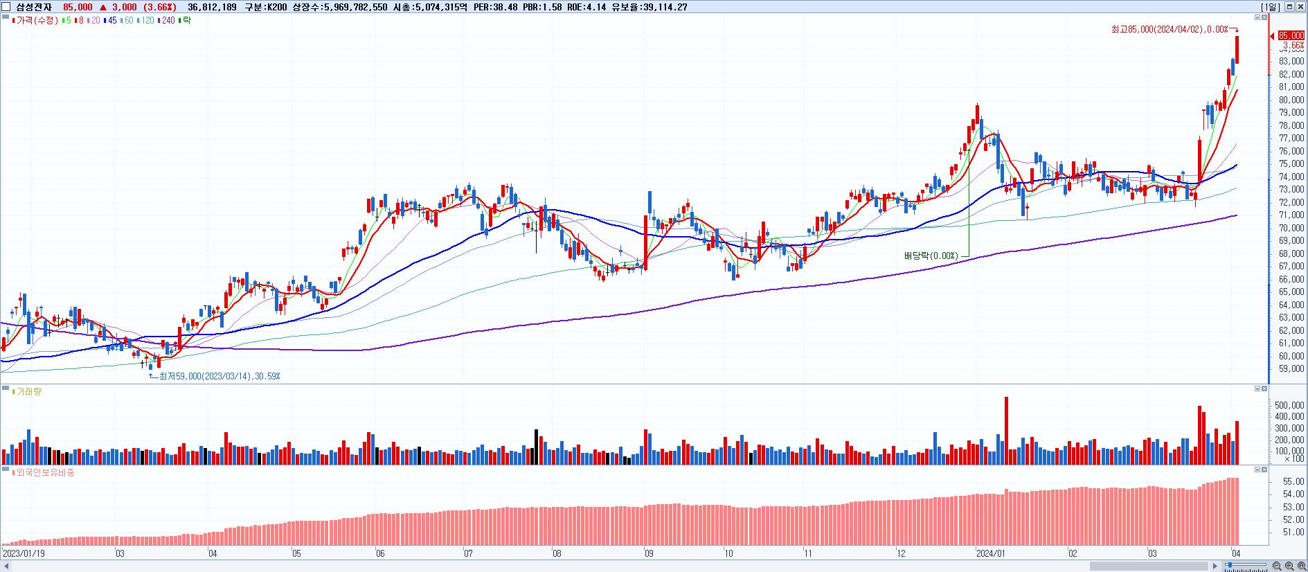 1.삼성전자 85,000원 ▲ 3.66% (KOSPI, 005930)