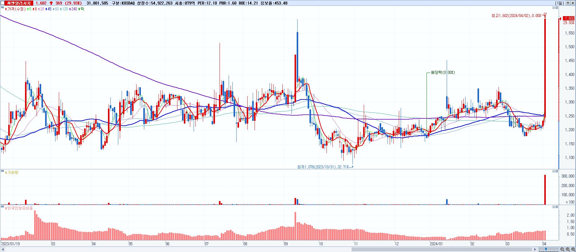 씨엔알리서치 1,602원 ▲ 29.93% (KOSDAQ, 359090)