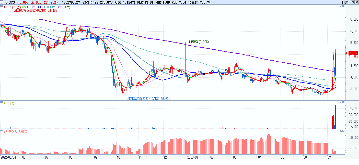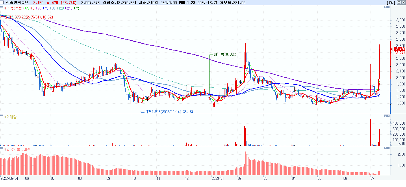 시총: 340억 거래량: 3,007,276 거래대금:69억