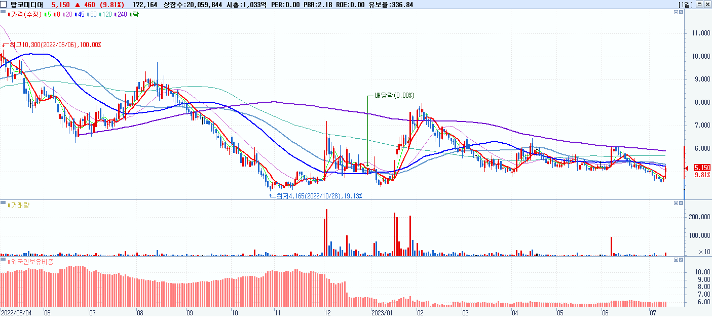 시총: 1,033억 거래량: 172,164 거래대금:9억