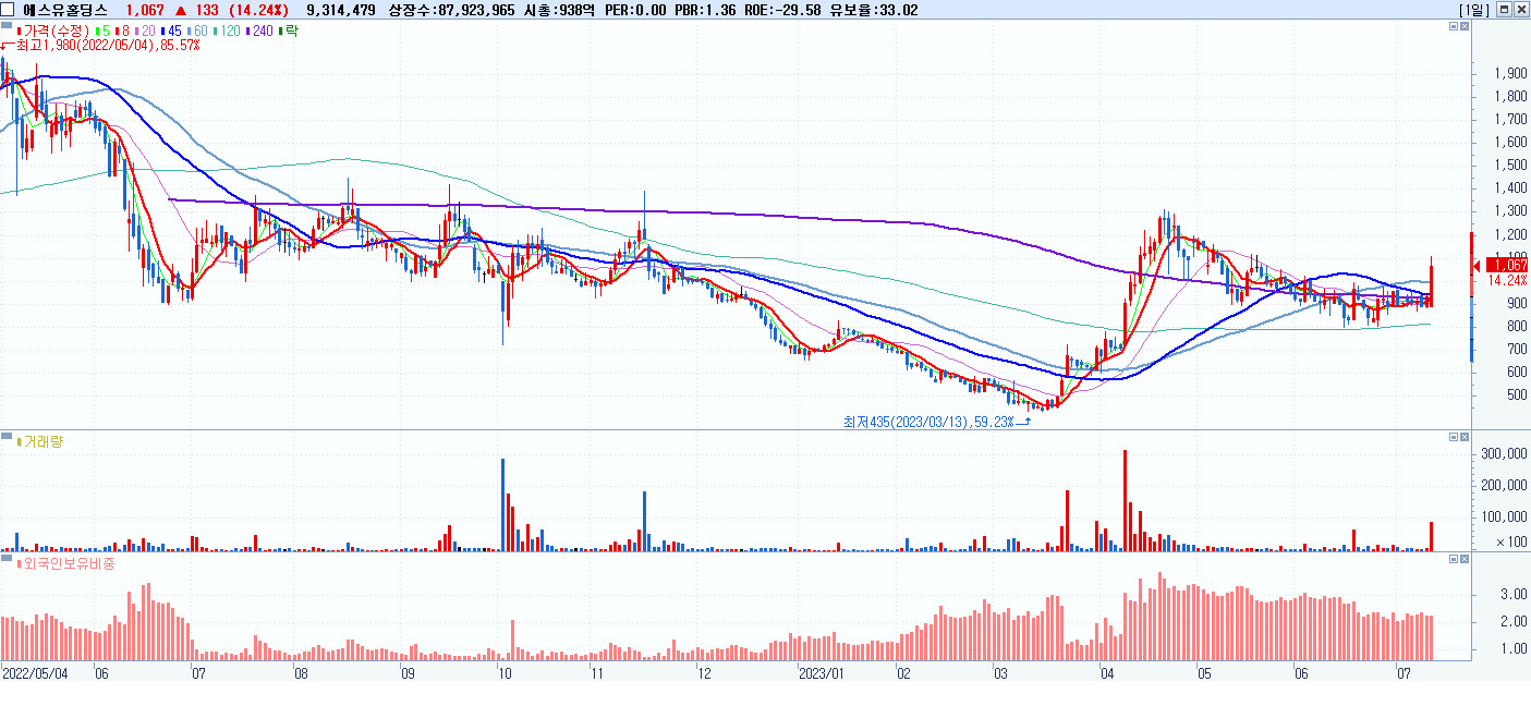 시총: 6,708억 거래량: 42,808,278 거래대금:1,142억