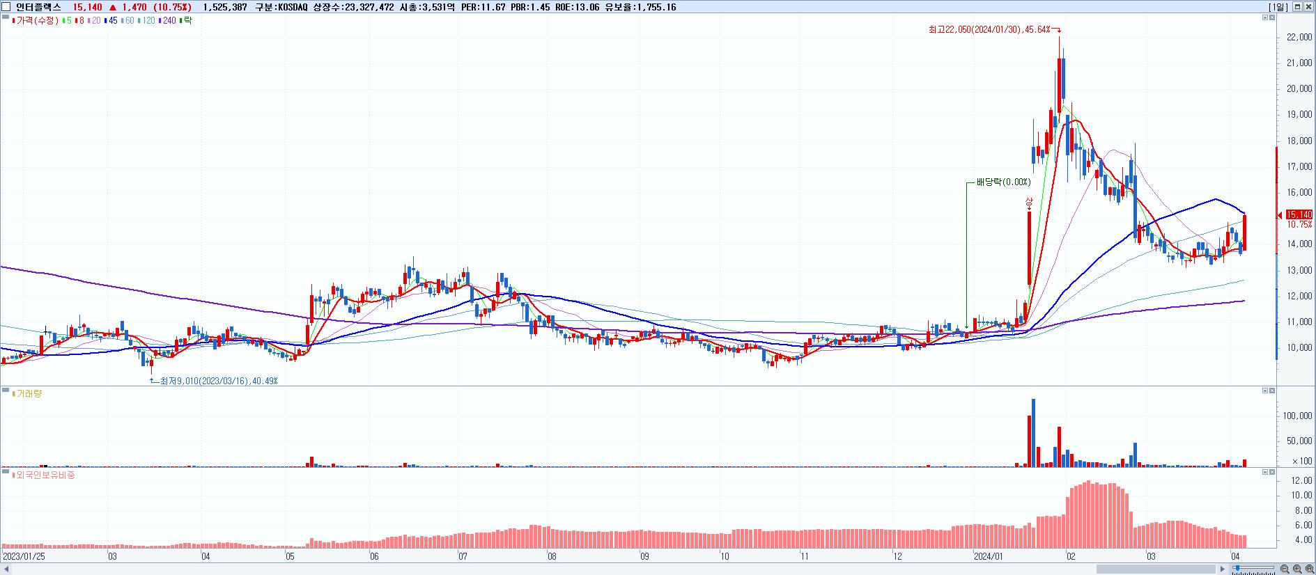 30.인터플렉스 15,140원 ▲ 10.75% (KOSDAQ, 051370)